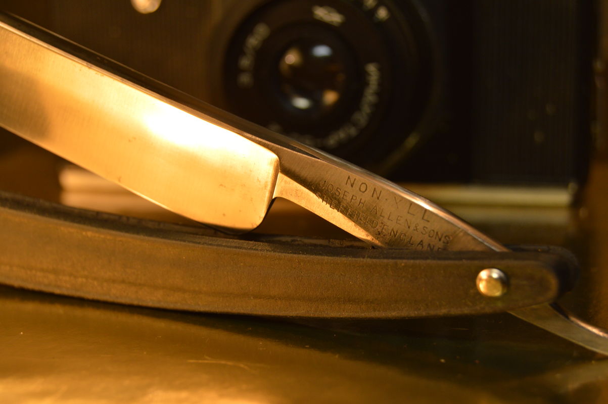 Re: Продаётся от artemarut1Spoiler Show Английская Joseph Allen&Sons NON XLL Состояние бритвы отличное, вскрыл, сделал легкую чистку, поставил осевые шайбы, в целом можно сказать новая бритва лежала 100 с лишним лет. Ручка по видимому прессованная кожа, клинышек олово, геометрия на высоком уровне, точится с чувством "Ну тут все в порядке". Местами осталась патина(район эрля) , можно было убрать, но из уважения к возрасту не хочется превращать в леденец, то есть стирать острые углы бритвы. Размер чуть больше чем 20/5,5мм (полотно/спинка) Цена Продано Spoiler Show