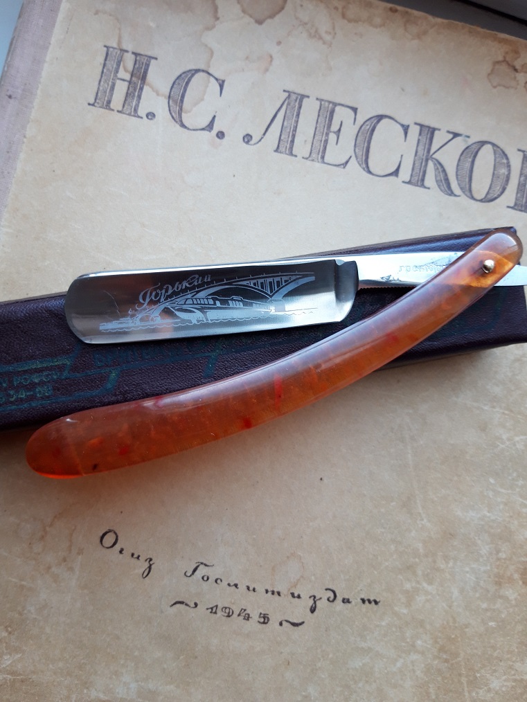 Re: Продаётся от KarangiЗТВ Гравюра "Горький" 64 г.в. Бритва в использовании не была. Все заводское. Не заточена. На нелицивой стороне есть ооочень поверхностные цяточки. Состояние 8 из 10. Будет заточена.