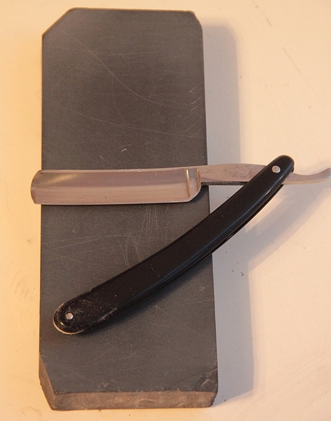 Совершенно нетронутая бритва ни временем, ни заточными камнями. Как по мне, так не только исключительная по красоте бритва, но также и отличный инструмент в опытных руках. Прекрасное, мягкое бритьё. Проверено не раз.
