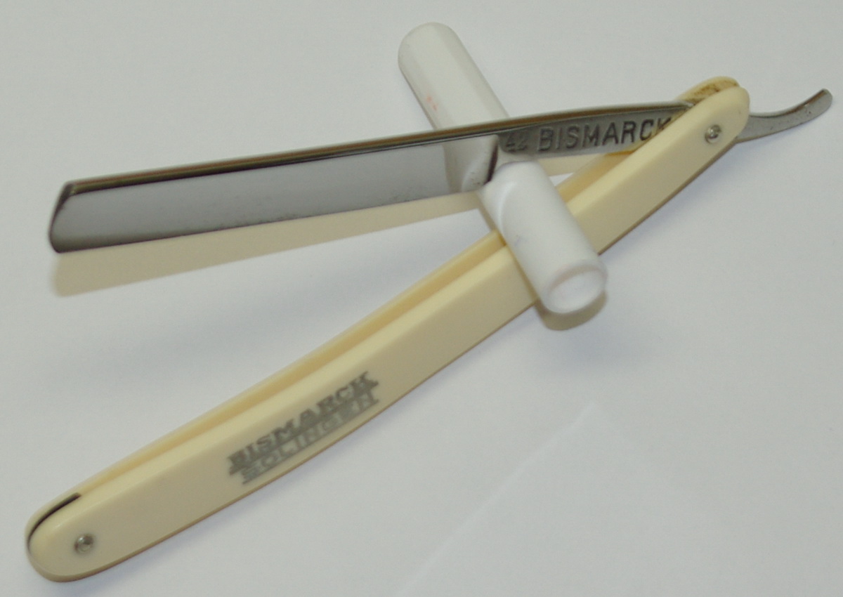 2.1 Бритва опасная Bismarck Solingen 4/8 не заточена. для тех кто хочет повозится, но дешево. Предыдущий владелец пытаясь сам что то сделать, как все новички шкуркой чуть чуть дернул в доль. Потому и востановление для меня не рентабельно (пока сточишь эти риски бритва из 4/8 превратится в 3/8) А если просто бриться то без проблем. Цена 2000 рублей Информация актуальна?