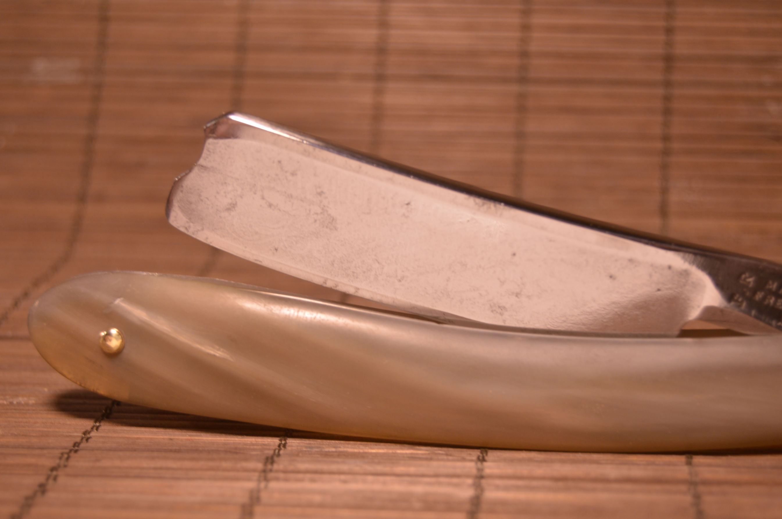Re: Продаётся от artemarut1 Wade&Butcher-ы и не только!Frederick Reynolds Бритва известного английского производителя, новая ручка из полупрозрачного рога сделана по размерам оригинальных, под светом можно увидеть все изнутри ручки, закрывается строго по центру, линия режущей кромки симметричная, что характерно для клинов с хорошей геометрией, не было регринда - только легкая чистка, на полотне видны надписи производителя, к сожалению трудно сфотографировать. Размер 20+/6мм. Цена 9900р. включая заточку.