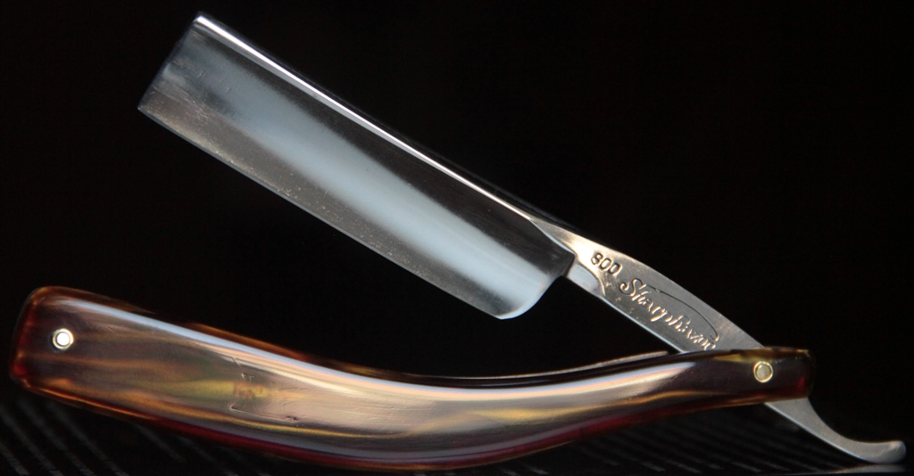 Бритва в очень хорошем состоянии.Ничего с полотном не делал. Бритва не разбиралась.Красивая,пластиковая,трёх-пиновая, "под дерево" оправа.Сталь и кромка чистые, без проблем.Идеальная геометрия.
