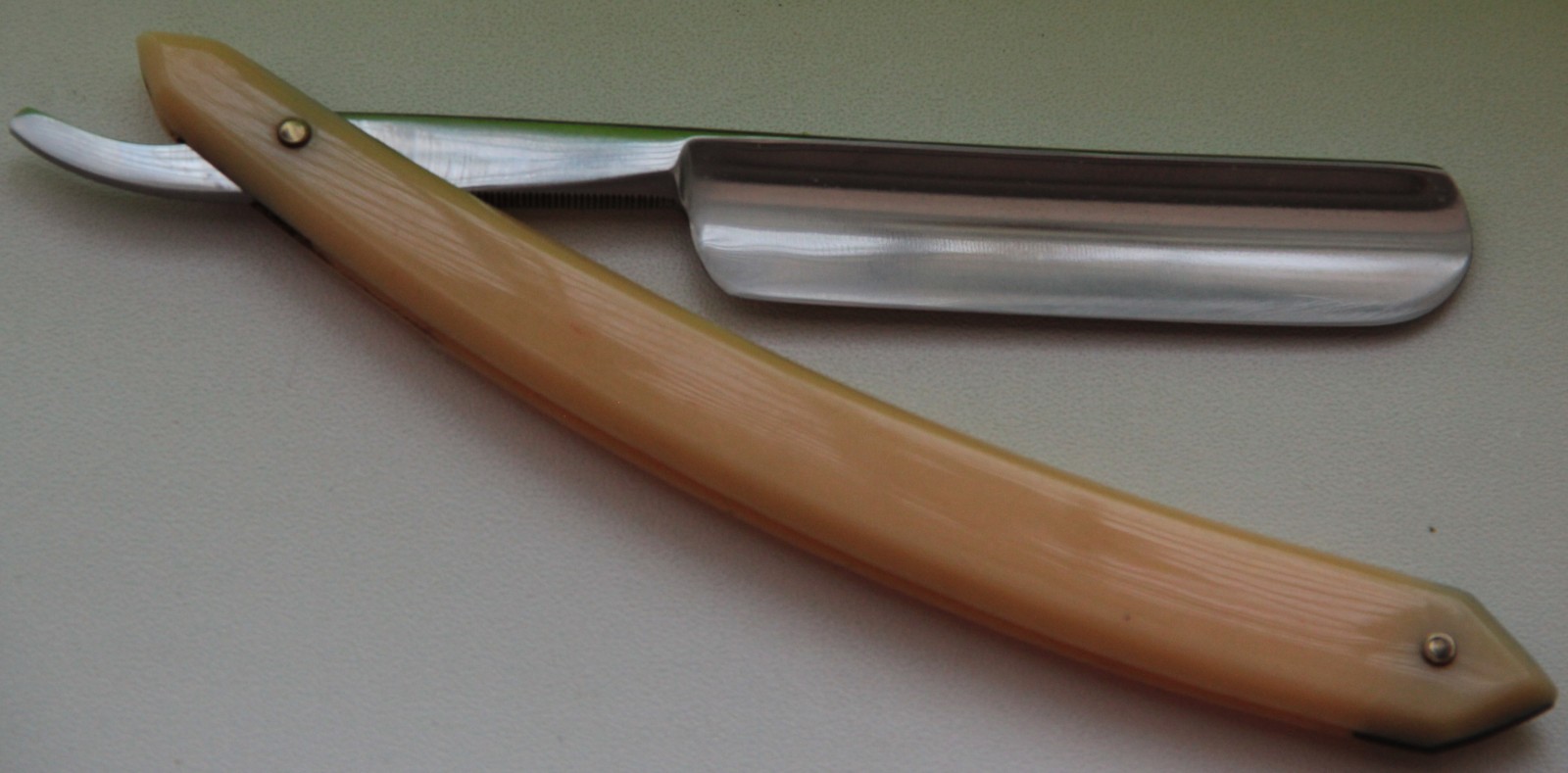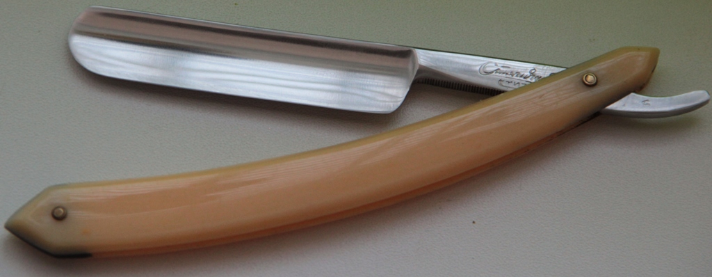 Бритва совершенно нетронута ни временем, ни заточными камнями. Только заводская заточка. Сталь и кромка чистые, без каких либо проблем. Тяжёлая, практичная бритва. Бритва не разбиралась и не ремонтировалась.