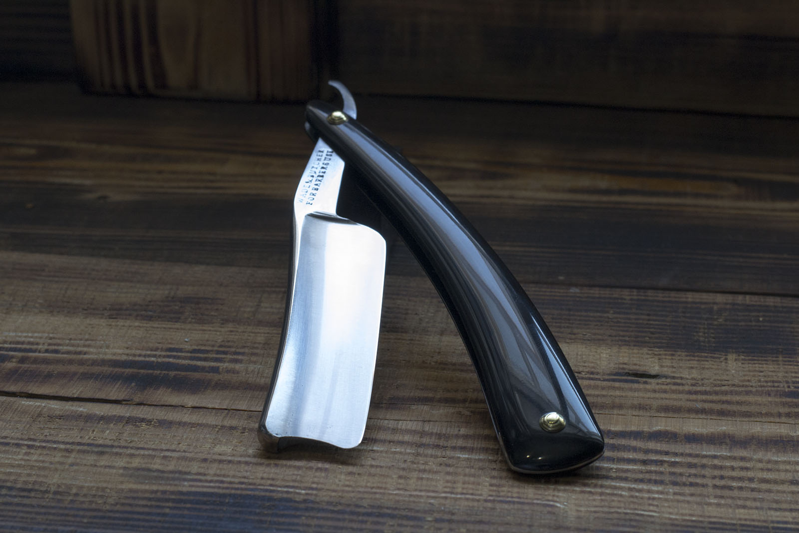 Бритва от знаменитого английского бренда Wade&Butcher о легендарности которого, мне уже надоело писать. Примерно за 150 лет существования компании было выпущено множество моделей бритв, но самые знаменитые это так называемые тесаки с парикмахерской меткой - For Barbers Only( FBO) или как в данном случае For Barbers Use(FBU), бритвы действительно очень массивные и самые большие экземпляры, виденые мной достигают 29 мм, невольно начинаешь задумываться об измельчании совеменных барберов, использующих скромные шаветки и впадающие в ступор от бритв в 6/8. Данная бритва имеет вогнутость в 3/4(почти полная), ширину полотна в 24 мм. (15/16), родная роговая рукоять настолько обветшала что просто рассыпалась в руках, скорее всего бритва выпущена в 1840-1850-х годах и почти полная вогнутость полотна является в данном случае редкостью, так как клинов в те года выпускалось на порядок больше, кроме того они лучше сохранились из за большего запаса прочности. На эрле и полотне специально оставил небольшое количество мелких каверн, дабы подчеркнуть почтенный возраст бритвы, новая роговая рукоять изготовлена в соответствии с точной формой и материалами со старой, сохранены родные шайбы. Бритва изготовлена из качественной углеродистой стали, причем более твердой чем обычно использовалась на клинах, считаю это несомненным плюсом, так как некоторые шеффилдские холлоу граунды делались с такой же твердостью как и клины, что на мой взгляд неправильно. Сталь вогнутой бритвы должна быть на несколько единиц тверже. Бритва заточена и готова к бритью, отличное дополнение к любой коллекции. Продано0 FBU Show