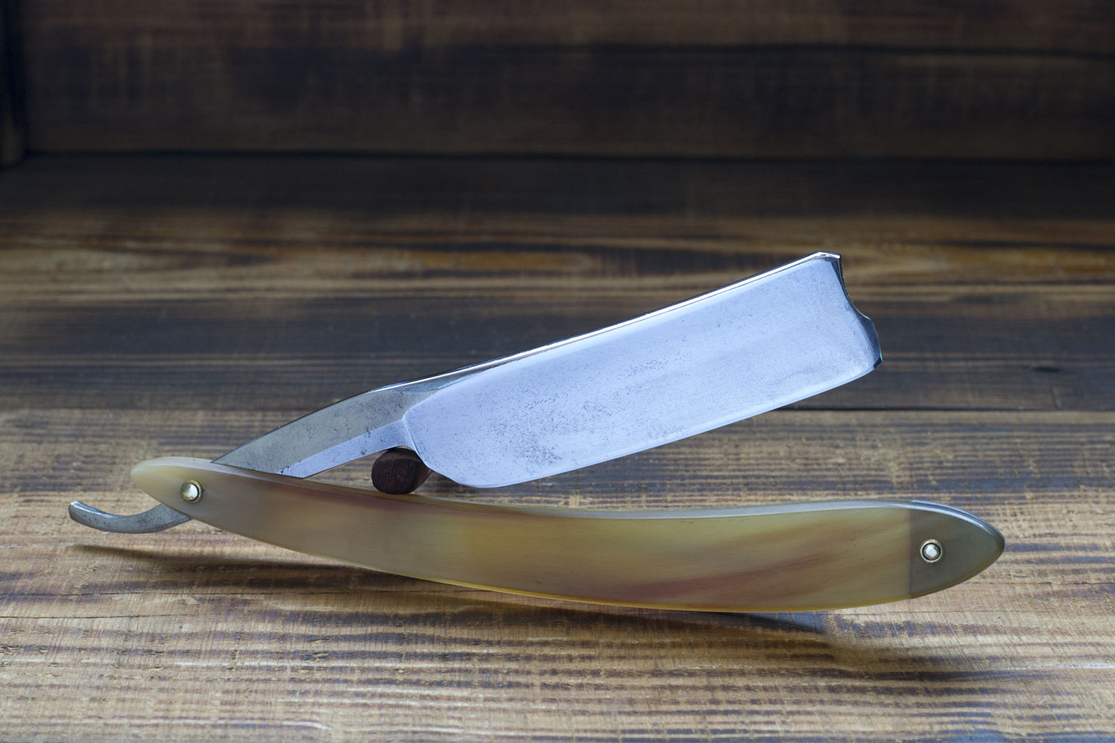 Опасная бритва от Джозефа Востенхольма торговой марки Ebro. Бритва имеет довольно скромные размеры в 5/8 (16.6 мм.), вогнутость полотна примерно 1/2, роговая рукоять, немного длинная, но я уверен что родная, так как не было замечено каких либо следов перестановки - оба пина были одинаковыми, аутентичные латунные шайбы, которые удалось сохранить. Бритва точилась мало и аккуратно, поэтому размер полотна близок к оригинальному. На эрле присутствует клеймо England, что может смутить любителей датировки бритв по Standart Guide, несмотря на его наличие я уверен что бритва выпущена ранее 1890-х, а именно дата выпуска примерно 1860 - 70 гг, об этом говорит и период работы фабрики, и форма полотна в сочетании с материалом рукояти. Бритва имеет прекрасную геометрию - фаска тонкая и равномерная по всей длине, углеродистая сталь высокого качества хорошо проявившая себя в заточке. Бритва крайне интересна, особенно рекомендую новичкам, так же будет удобна при окантовке. Продано EBRO Show