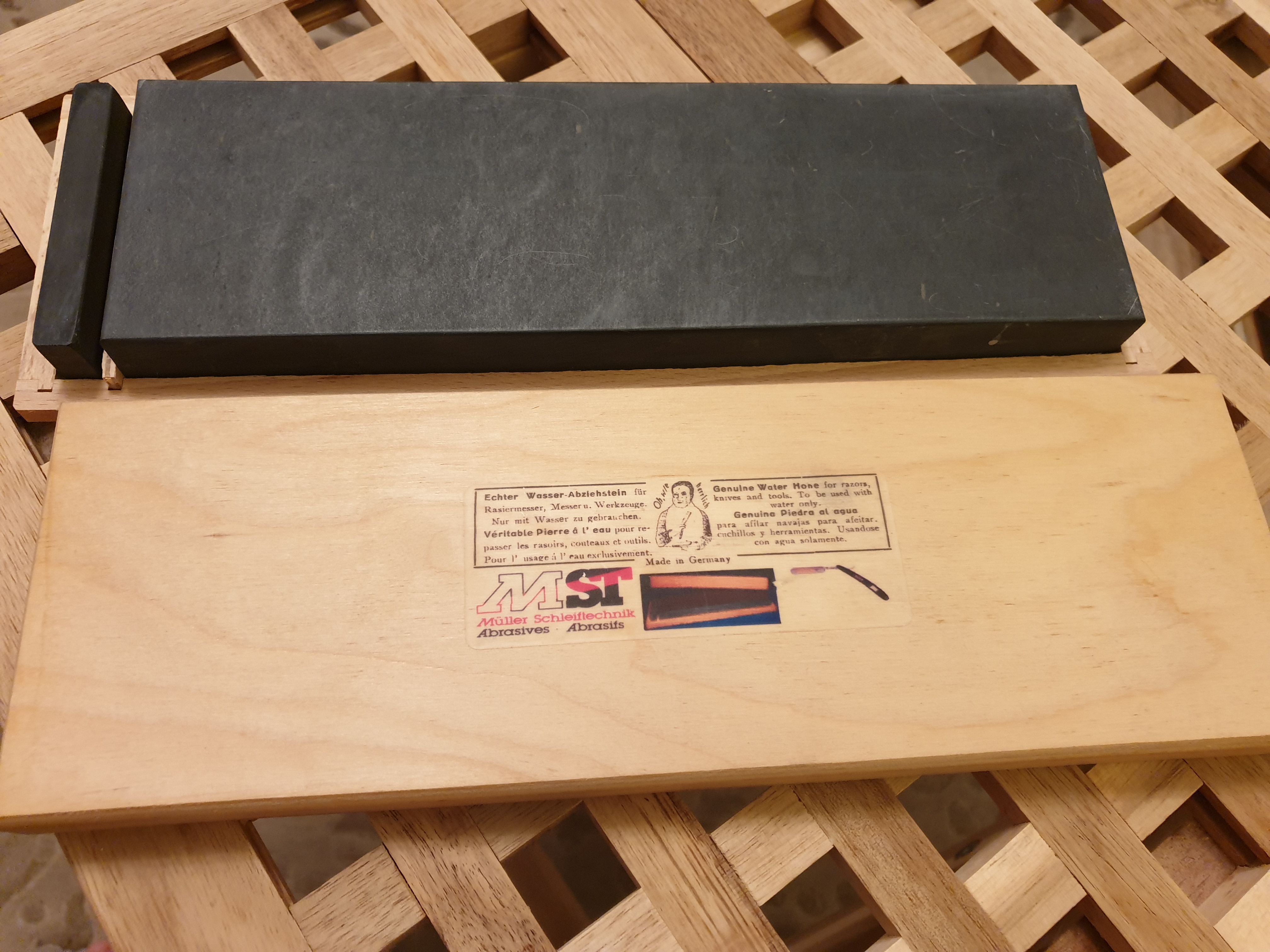 Натуральный черный сланец от немецкой компании MST Müller-Schleiftechni выдает 8000 grit. Размер камня: 250мм×75мм×20мм Покупал здесь на форуме, но не пригодился. Камень новый, выровнен и готов к использованию. продан
