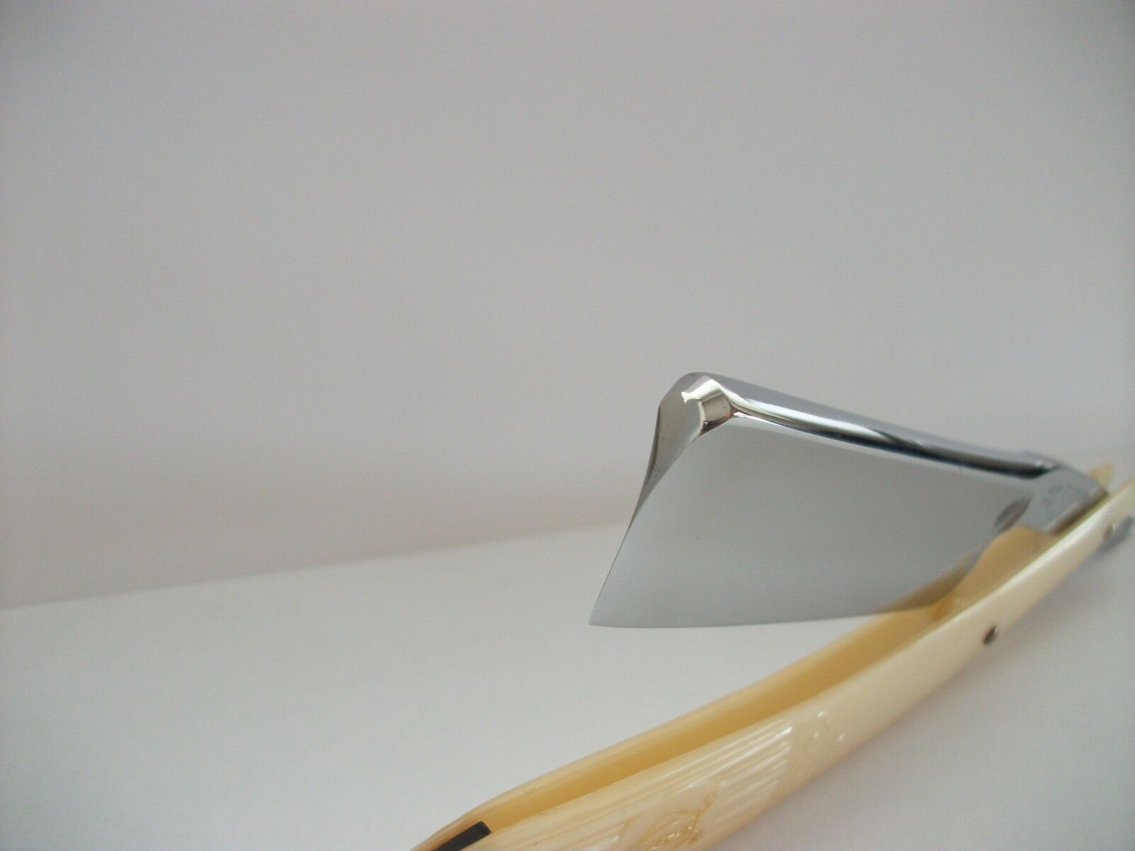 Состояние: Углеродка, заточена и готова к бритью, ширина полотна 14мм. Клинок укорочен на несколько мм. Ручка из бивня слона. Редкий экземпляр с номером МК№1, за всю практику встречал один единственный раз. Цена: Продано Spoiler Show