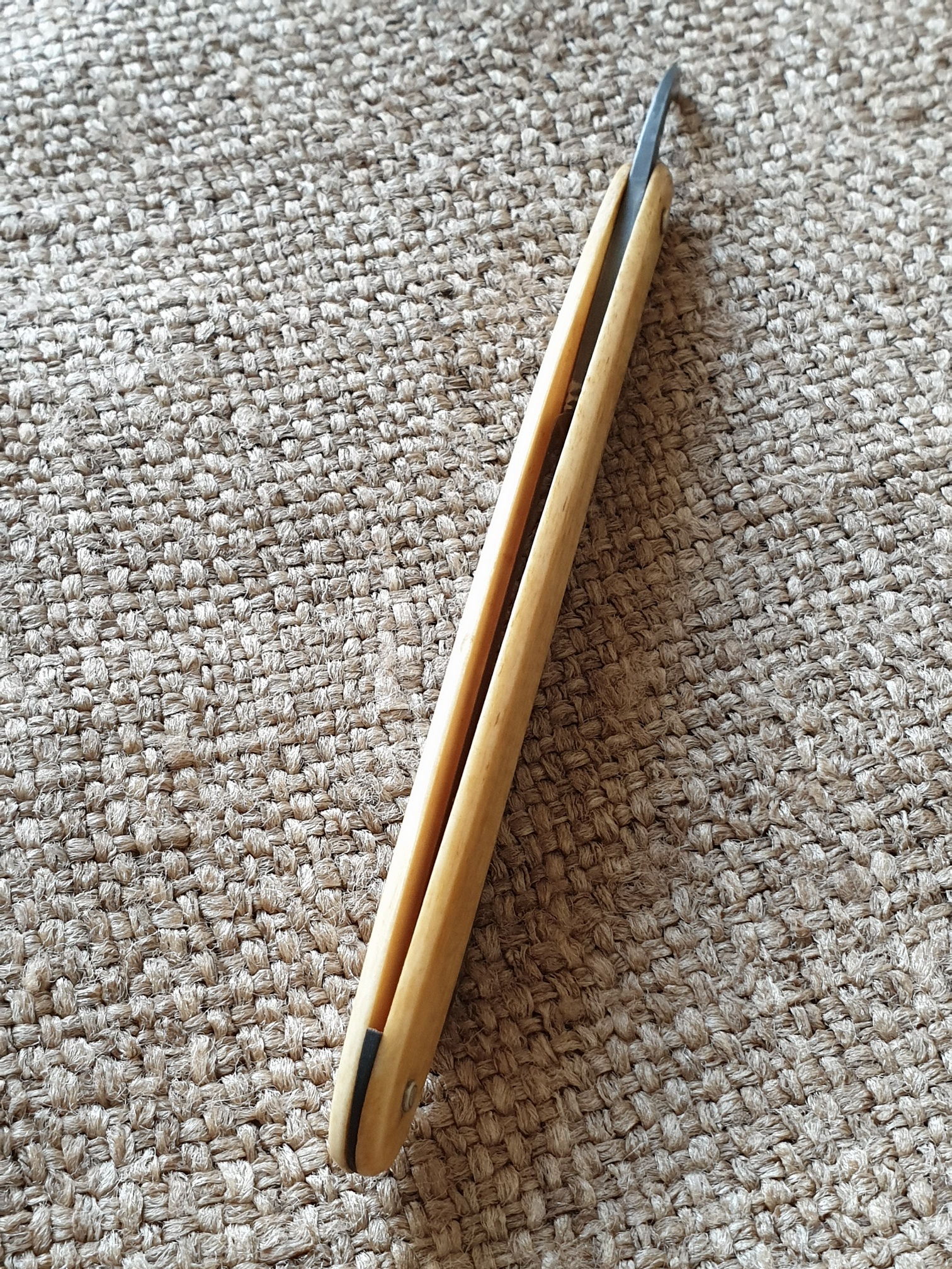 Ширина клинка 16+мм. Клинок паркуется в ручку штатно, без перекосов и закусываний. Фабричное воронение на эрле и хвостовике. Небольшая трещинка на одной плашке ручки, проблем не создает. Сделана чистка и заточка. Комфортный мягкий рез. Цена ПРОДАНО Spoiler Show