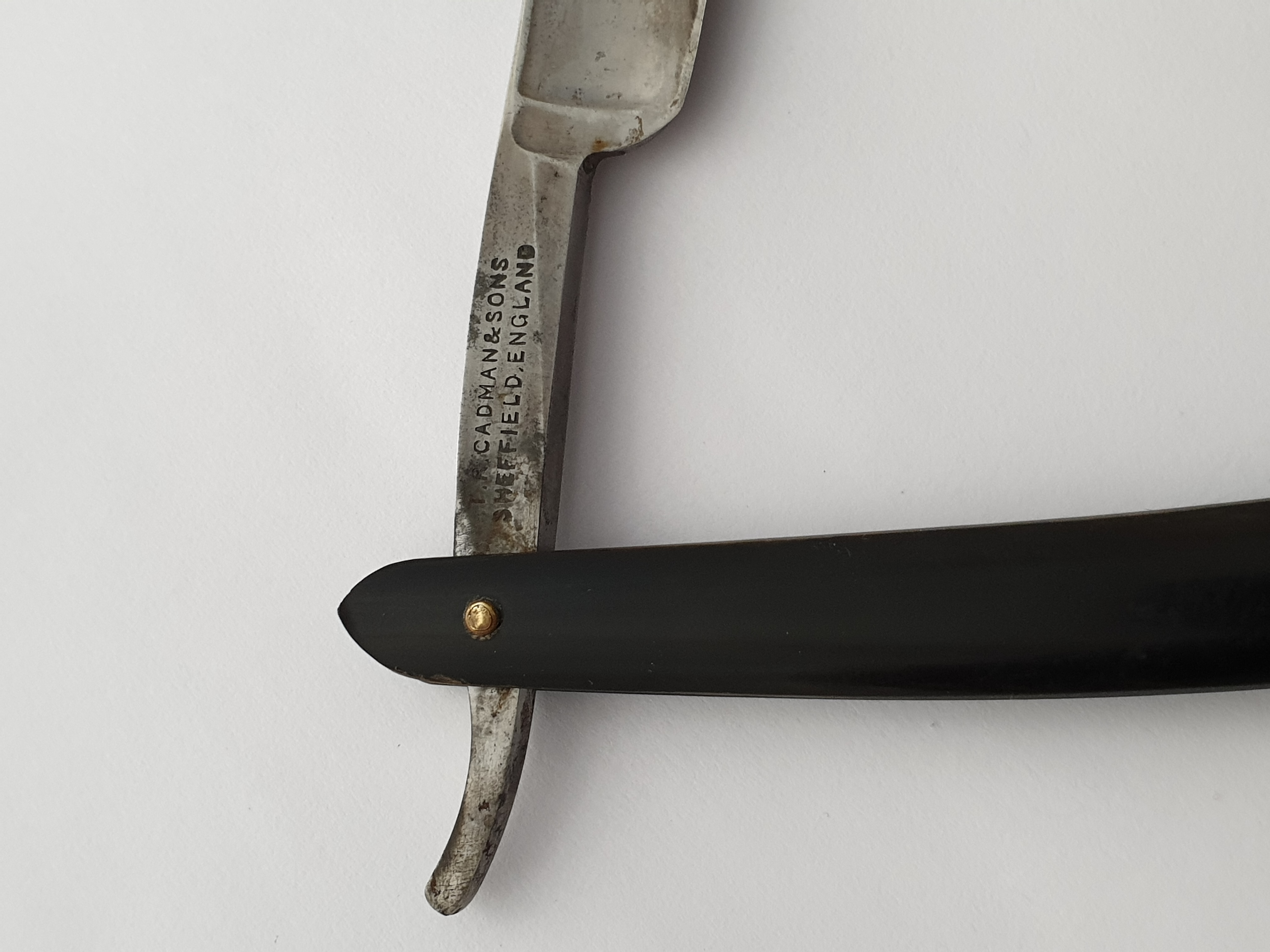 Продаётся от S&T61. Бритва под восстановление, продается как есть: популярная модель Bengall от T.R.Cadman&Sons Sheffield England. Ширина клинка 16,5мм, обух 5мм. Ручка из рога, без выгрызов и прочих повреждений, клинышек из олова, родные пины. Бритва не разбиралась, не шкурилась и пр. Клинок паркуется в ручку без перекосов и закусываний, сидит на осевом пине плотно.