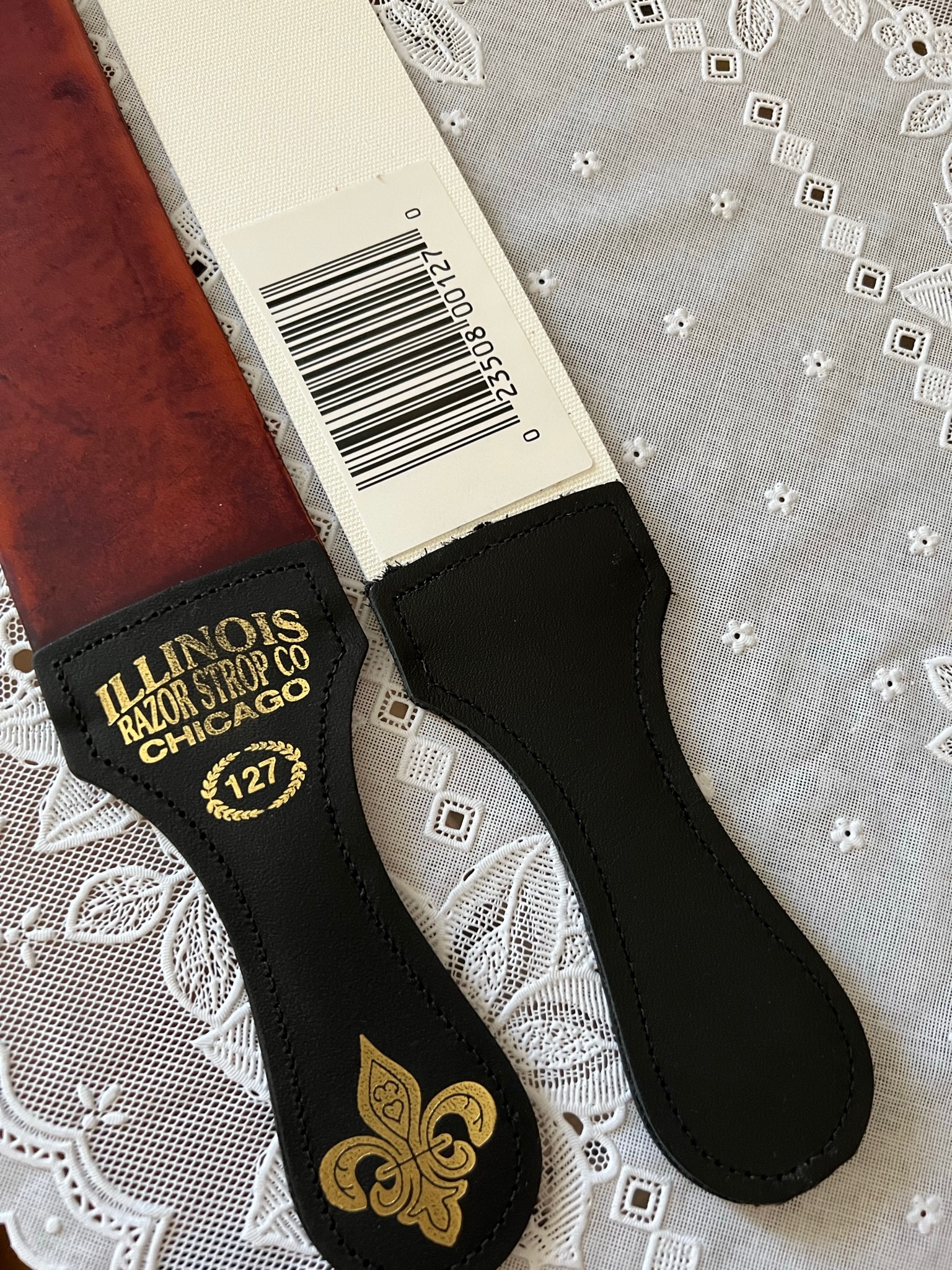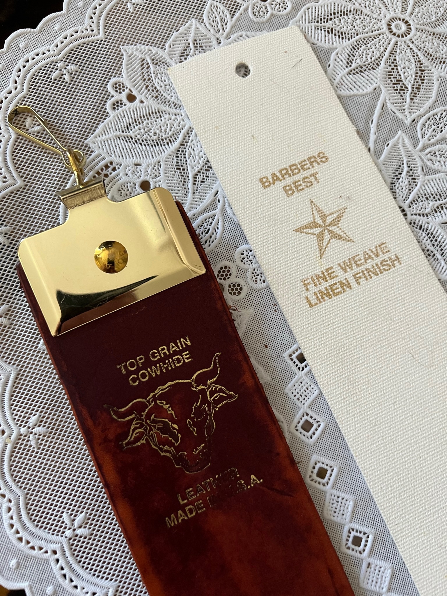 Продам ремень для правки Illinois #127, изготовлен в США, шириной 2 1/2 дюйма и длиной 23 дюйма с рукояткой. Толщина кожи 3,5 - 4 мм. Растительное дубление. Две полосы- кожаная и льняная. Обработал наждачкой Cubitron до 2,5К. Правил бритву один раз для пробы. Работает, как, в общем-то и должен.