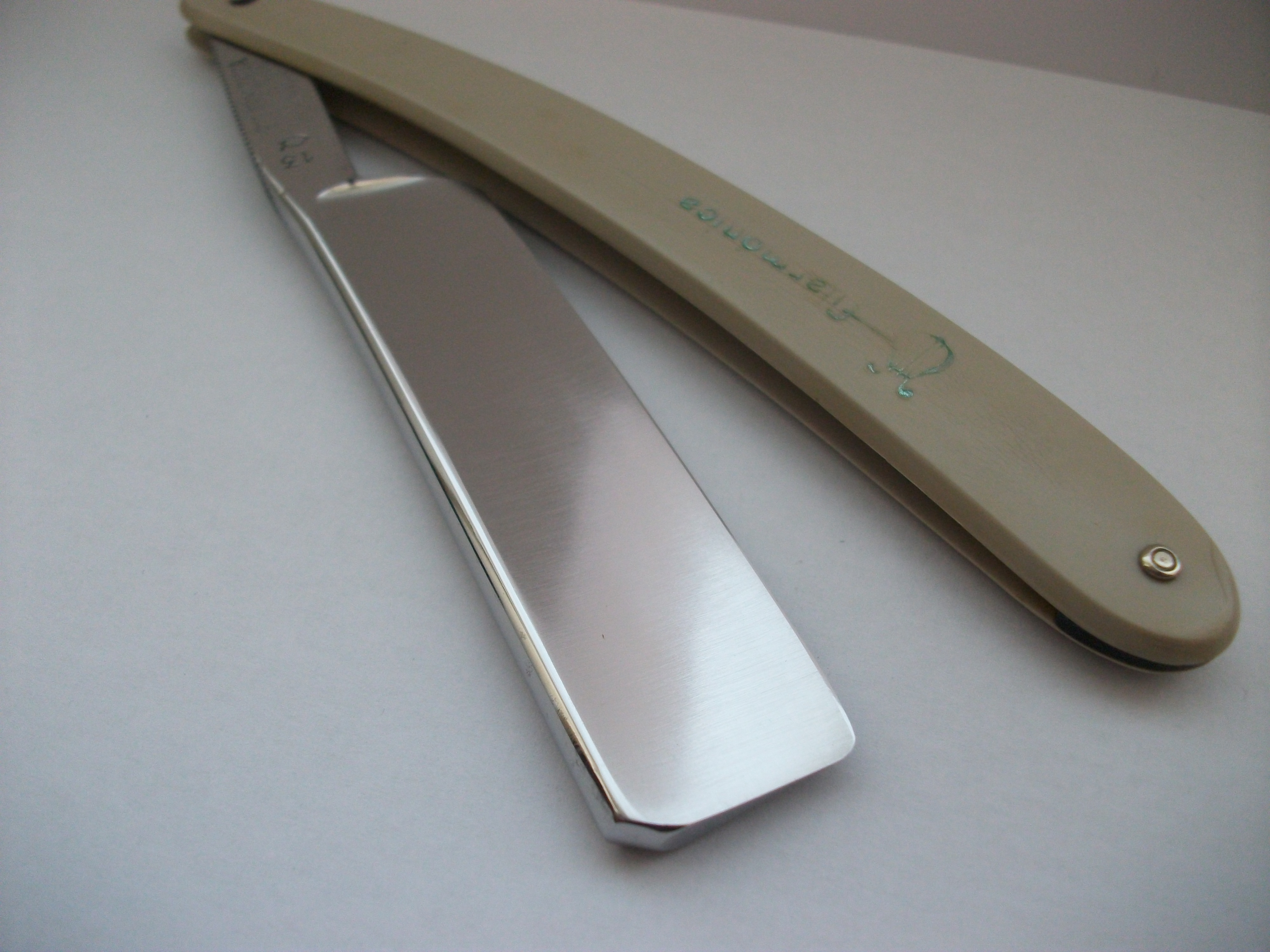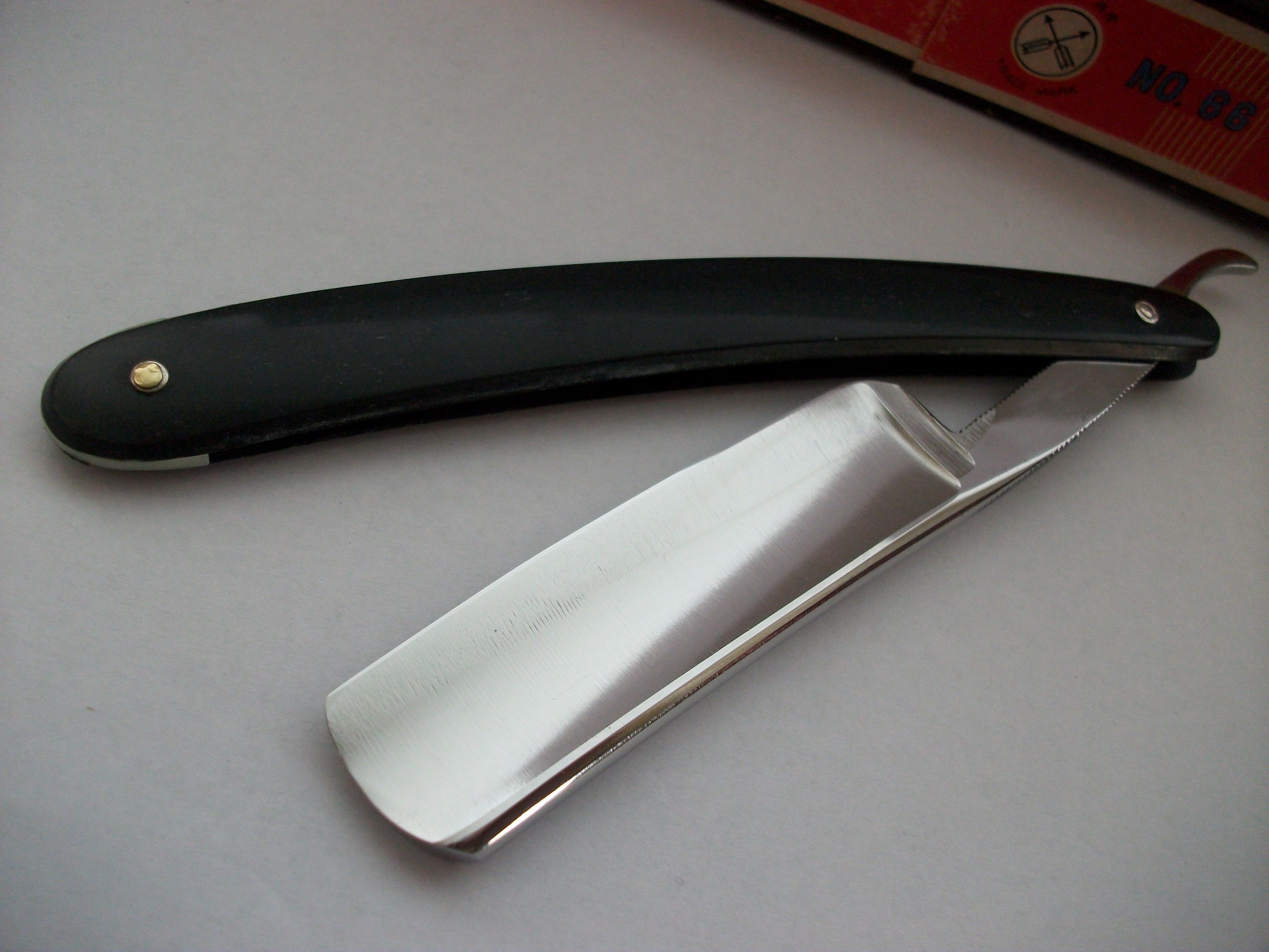Еще один винтажный китаец. Углеродистая сталь, ширина полотна 20мм, длина режущей кромки 70мм, ручка из пластика. Заточена и готова к бритью.