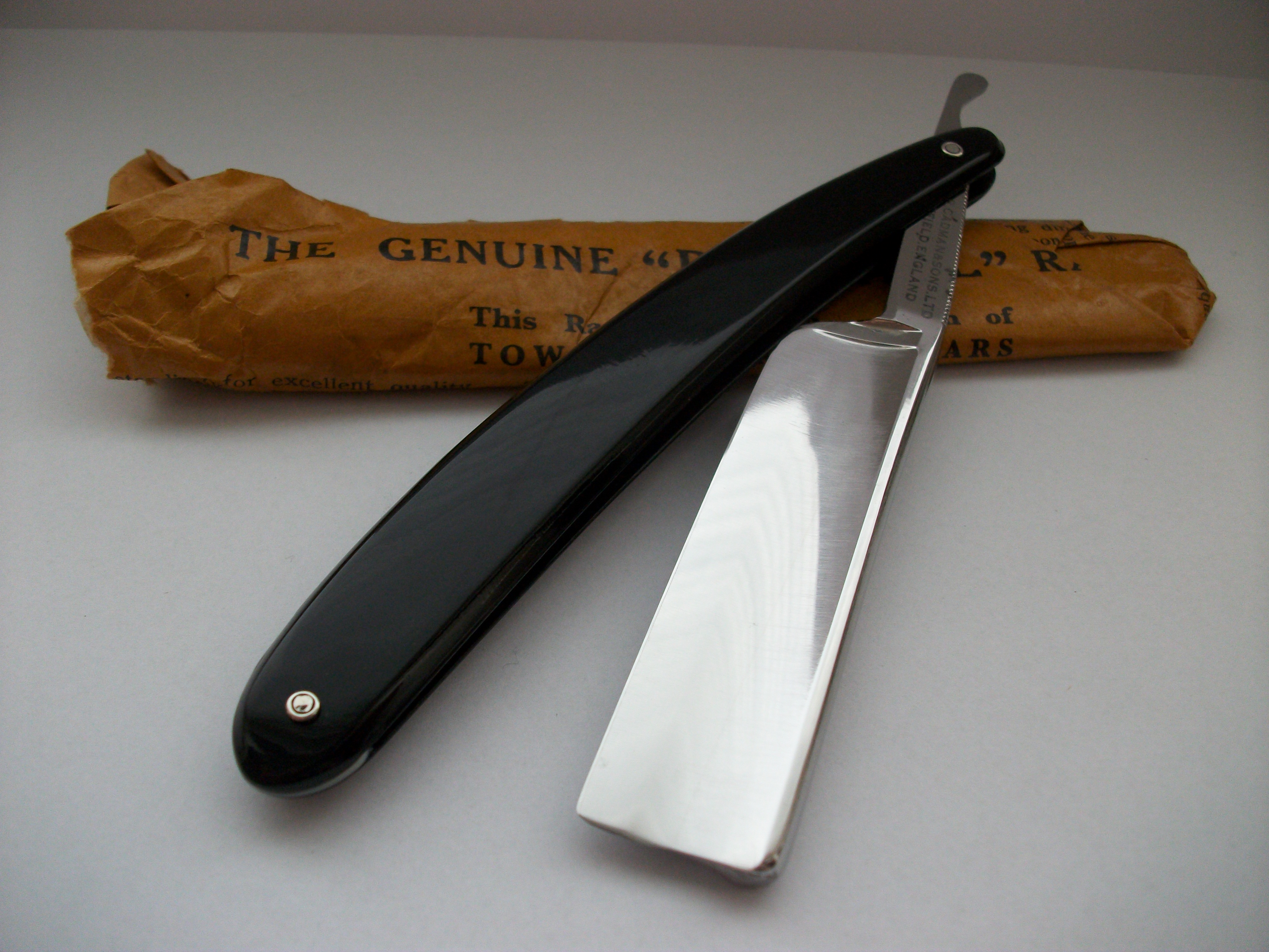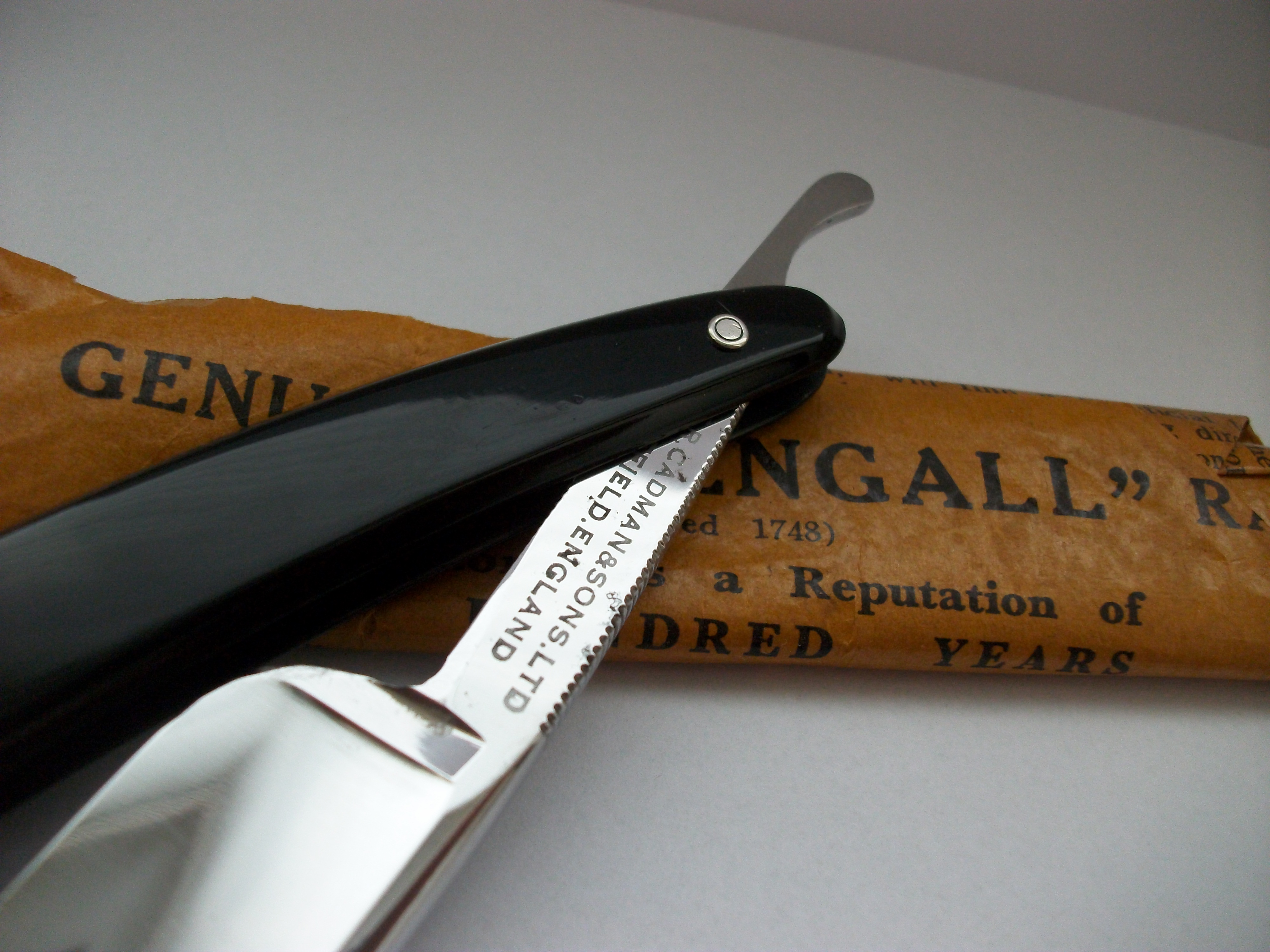 Пора замахнутся на Вильяма нашего Шекспира в лице Bengall от Cadman и сыновей Шеффилд. Углеродистая сталь, ширина полотна 21мм, длина режущей кромки примерно 72мм, вогнутость полная, ручка - пластик. Бритва не была в пользовании, но годы взяли свое, бритву пришлось почистить от точечной ржи (не разбиралась). Небольшие царапки присутствуют. Отличная сталь.