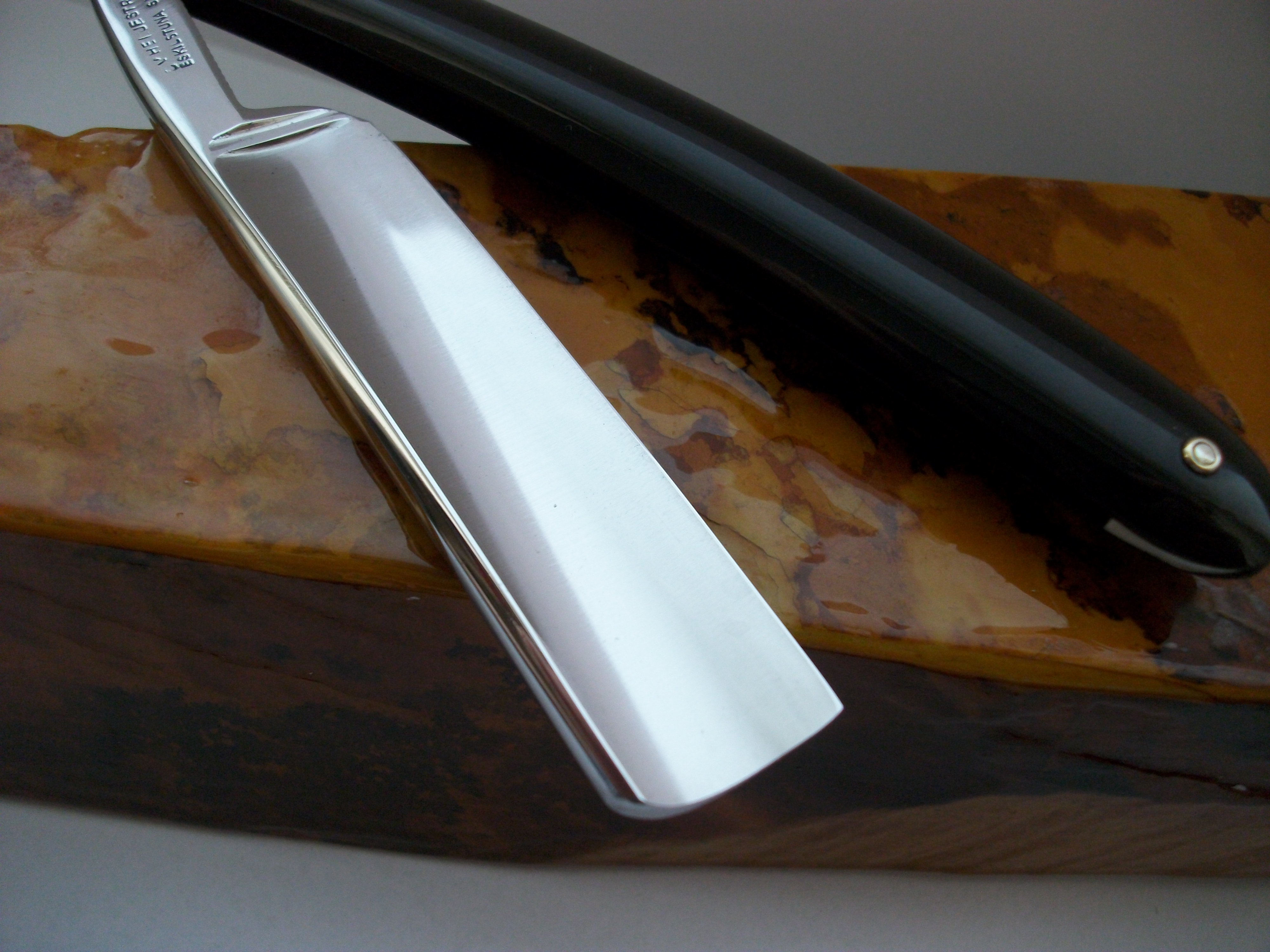 Heljestrand MK№4 Элита Шведского бритвостроения, углеродистая сталь, ширина полотна 17мм, длина режущей кромки 65 мм (из за скола на кончике была укорочена примерно на 3мм). Хорошее состояние полотна, родной сатин очень живой, геометрия на высоте. Финиш на пародистом Японском натуральном камне. Ручка - эбонит.