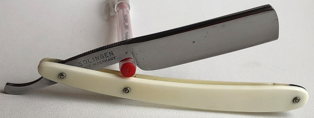 Ширина полотна-19.5 мм Толщина обушка-5.5 мм Полная вогнутость. Углеродистая сталь. Примерно, 50-60-е годы 20-го столетия. Бритва представляет собой идеальное сочетание по формуле цена/качество.Практически неуловимые следы пользования.(возожно точилась раз или два, не более). Не разбиралась и не ремонтировалась. Заводская шлифовка и полировка клинка.Идеальная геометрия полотна:кромочка равномерна по всей длине.Отличная "звенящая" сталь позволяет качественно произвести заточку и тонкую доводку, а также довести бритву до комфортного и мягкого бритья.Сталь и кромка чистые, без видимых дефектов.Бритвы этого знаменитого немецкого бренда пользуются очень хорошим спросом у пользователей, из за своего качества. Не пропустите. Заточена и готова к бритью. Цена-7300 р с доставкой. ПРОДАН Внимание! Важная информация! Spoiler Show