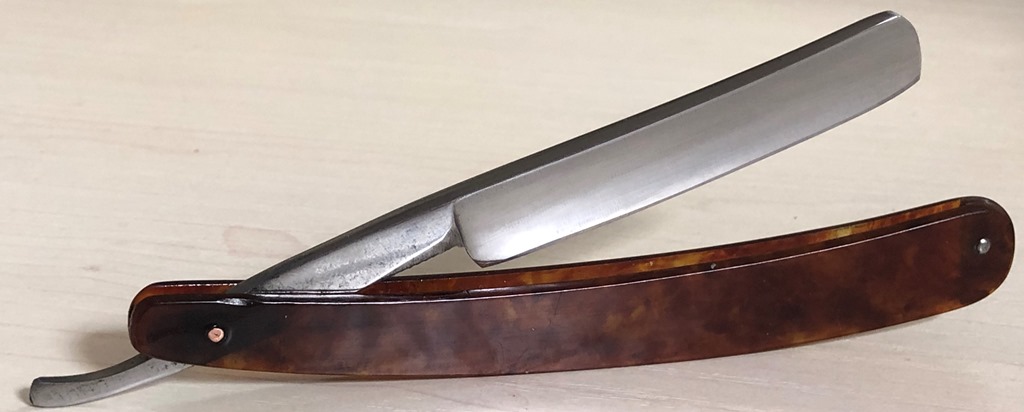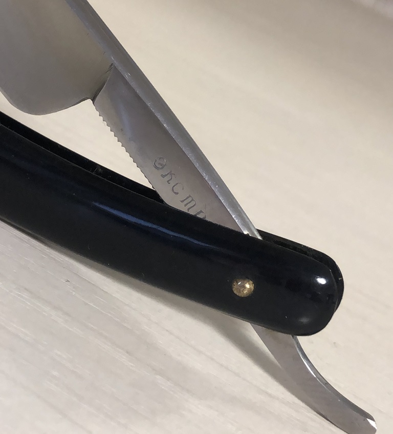Ширина полотна-21 мм Толщина обушка-5.5 мм Форма лезвия-1/2 клина Углеродистая сталь. Бритва в очень хорошем состоянии, для своих лет.Не разбиралась и рне ремонтировалась, с минимальными и аккуратными следами пользования. Родная шлифовка и полировка полотна.Тяжёлая бритва, с мощной трёх-пиновой оправой.Сталь и кромка чистые, без видимых дефектов. Идеальная геометрия полотна..Красивая, с характером бритва, будет отличным дополнением для любой коллекции.Заточена и готова к бритью. Цена-6500 р с доставкой. ПРОДАН Внимание! Важная информация! Spoiler Show