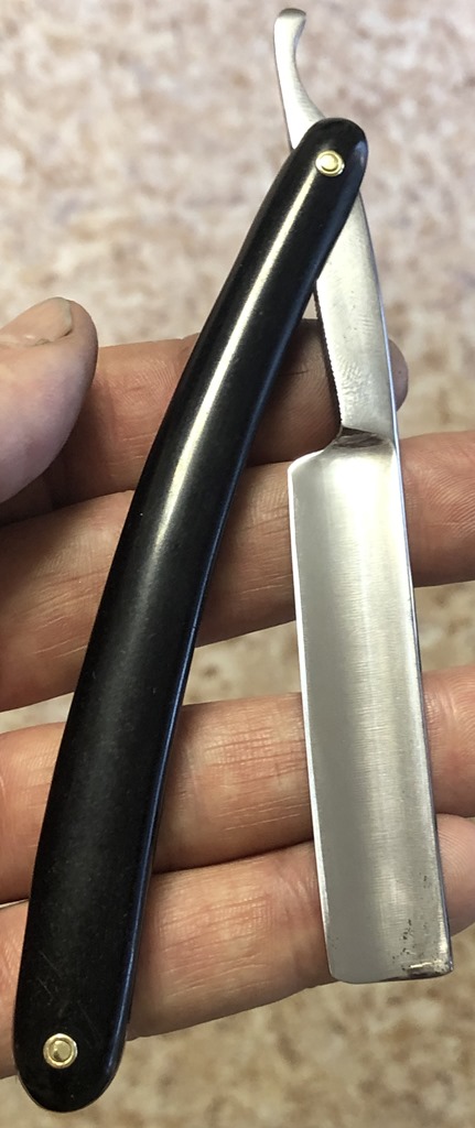 Ширина полотна-17.5 мм Толщина обушка-4.5 мм Полная вогнутость. Углеродистая сталь. Эти бритвы ещё можно где то раскопать, но очень редко встречаются в непользованном и в состоянии близком к идеальному.Данная бритва не была в пользовании,но пришлось разобрать и почистить немного в районе осевого пина. Оригинальная шлифовка полотна, без вмешательства. Если не брать несколько незначительных "точек времени" на клинке(которые нарочно не стал убирать, чтобы сохранить аутентичность полотна), состояние полотна идеальное, без каких либо видимых дефектов.Пины удалось поставить родные, которые и были.Идеальная геометрия клинка:кромочка равномерна по всей длине и практически незаметна.Изображение моста четкое, без потертостей.По своей форме лезвия и размерам очень хорошо пойдет не только в коллекцию, но и для новичка.Заточена и готова к бритью. Цена-4300 р с доставкой. ПРОДАН Внимание! Важная информация! Spoiler Show