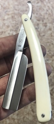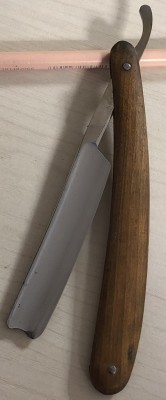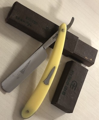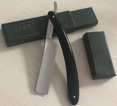 Ширина полотна-16.5 мм Толщина обушка-4.2 мм Полная вогнутость. Углеродистая сталь. Бритва, приблизительно 1936 года выпуска. В весьма хорошем состоянии. Разобрал, почистил клинок и снова собрал, поменяв родные медные пины на немецкие втулки, с добавлением внутренних шайб.Оригинальная буковая ручка находится в исключительном состоянии, без каких либо дефектов.Сталь полотна чистая, геометрия идеальная. Кромочка еле заметна и равномерна по всей длине. Родная, редкая коробочка также в комплекте:плотный , без дефектов картон.Бритва заточена и готова к бритью. Цена-3800 р с доставкой. ПРОДАН Внимание! Важная информация! Spoiler Show