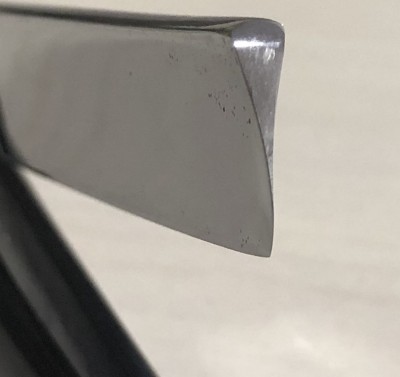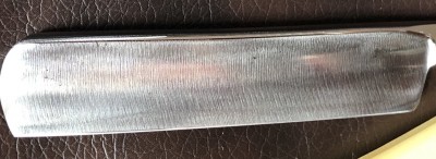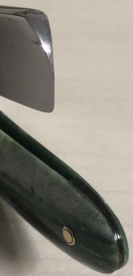 Итак,SUZUMASA 888.(寿々正 = Suzu Masa). Ширина полотна-21 мм Толщина обушка-6.3 мм Углеродистая, по всей видимости шведская сталь. Форма лезвия-фреймбэк. Время производства-50-60-е годы. Клинок имеет малозначительные и практически незаметные следы пользования. Разобрал бритву, немного почистил район осевого пина и обушок и снова собрал, сохранив родные пины. Заводская шлифовка и полировка полотна.Сталь чистая, с элементами благородной , старинной патины.Идеальная геометрия:кромочка равномерна по всей длине и еле заметна.Тяжёлая, мощная и красивая бритва будет отличным вариантом для тех, кто имеет желание попробовать подобную форму лезвия.Заточена и готова к бритью. Цена-6500 р с доставкой. Внимание! Важная информация! Spoiler Show