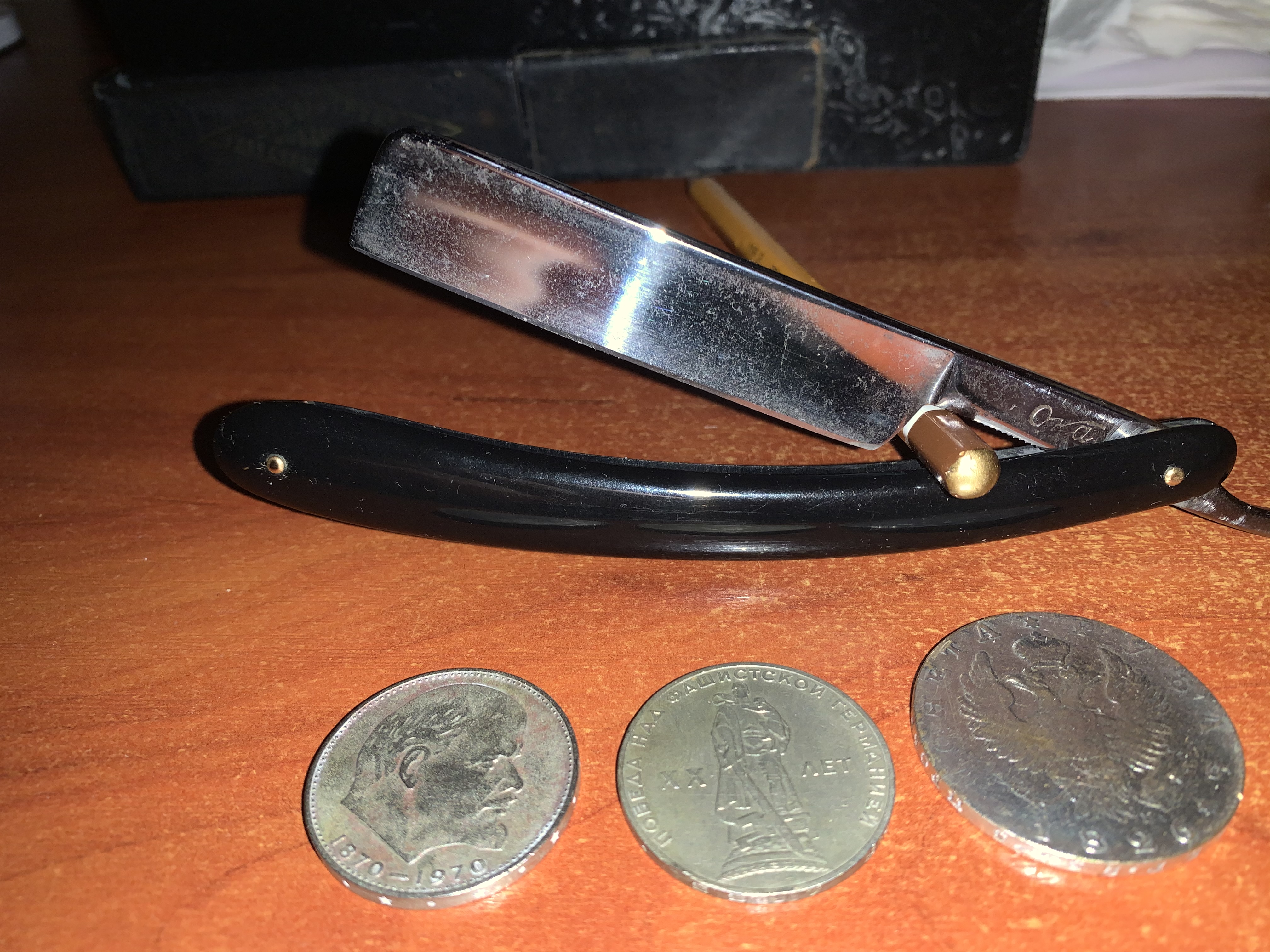 Сегодня пришла первая опасная бритва ОКА ЗТВ 54 год. Протестировал ее. Если честно думал будет много порезов в первый раз, но только пара точек и все. Ощущения лучше чем от Жилета и от Т. Раздражение есть, но не такое сильное как обычно. И уже оно не беспокоит. Выбрал ее, тк люблю коллекционировать, но это лучше чем монеты. Короче говоря мне понравилось и пора бросить тяпки в ведро  .