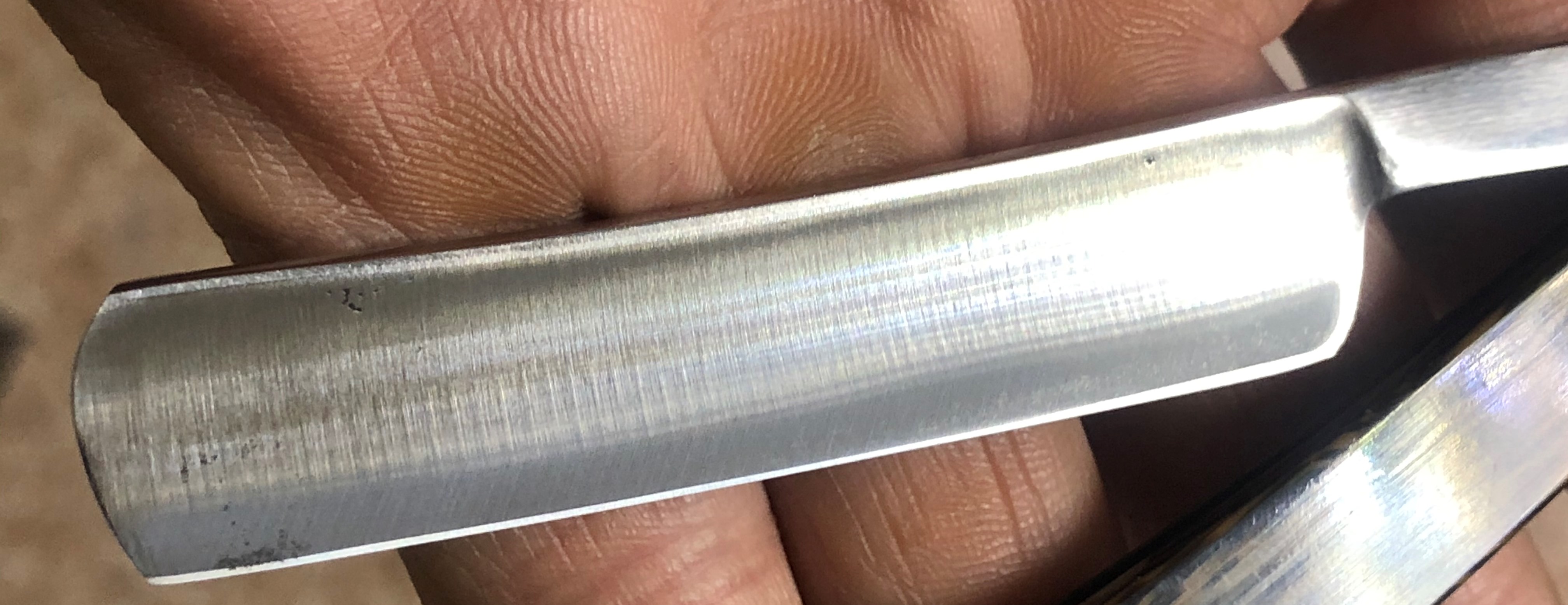 Ширина полотна-16 мм Толщина обушка-4.5 мм Полная вогнутость. Углеродистая сталь. Клинок немного почистил, оставив незначительные "следы времени". Взамен сломанной ручки поставил оправу от американского донора начала 20-го века.Идеальная геометрия.Очень приятная бритва во всех отношениях.Заточена и готова к бритью. Цена-3300 р с доставкой.ПРОДАН Spoiler Show