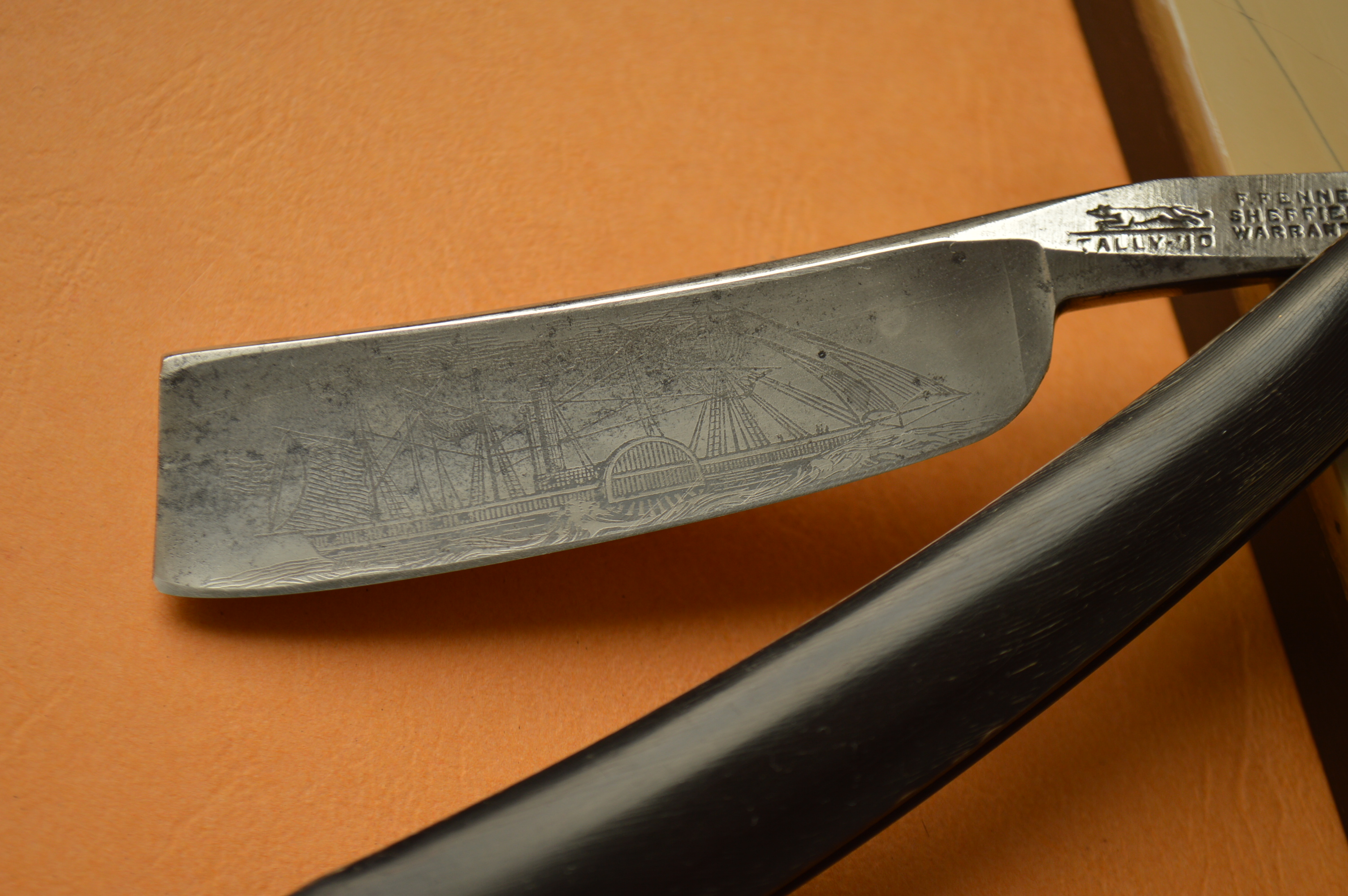 Spoiler Show Один из тех производителей, который имеет очень большую армию поклонников по всему миру, бритвы пользуются спросом среди почитателей бритья клинковой бритвой по всему миру. При этом в продаже появляются крайне редко. Бритва клин в хорошем состоянии ширина полотна – 6/8, длина по кромке 8 см, массивный образец старой Англии, очень редкая и в то же время удобная форма полотна имеет правильную легкую улыбку, которая образуется посредством сужения полотна к носику, что лучшим образом влияет на комфорт при бритье. Редчайший испанский носик, обратные спуски по обуху к его вершине, ручка рог изумительной формы и исполнения украшена инкрустацией. Бритва заточена для бритья, а не для полки. Бритва, как и все иные бритвы этого производителя, бреет прекрасно, сделанная из лучшей английской литой уклеродки готова мягко выбрить любую щетину. Очень редкий экземпляр, который станет прекрасным украшением любой коллекции, будет отличным вариантом в повседневной работе. Бритва полностью разбиралась и чистилась с последующей сборкой, ручка рог имела потери, сейчас все восстановлено и будет служить долго и надежно, Сама бритва несет в себе всю всою историю, все отметки времени на ней оставлены сознательно, все это и добавляет шарма и дает понимание того, что в руках действительно незаурядная 200-летняя вещь. Spoiler Show