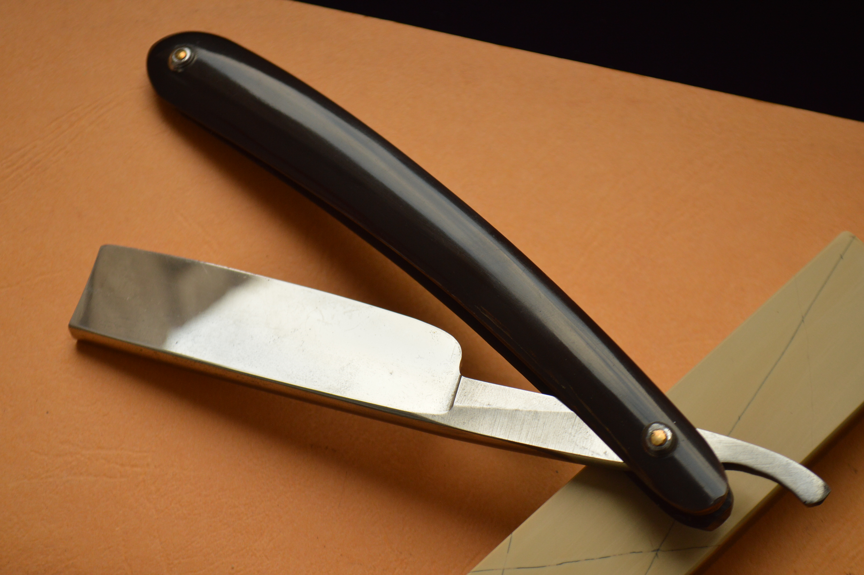 Spoiler Show Бритва в хорошем состоянии как для ее возраста. Бритва разбиралась, чистилась, менян осевой пин. Размер 4/8, выборка на четверть, ручка синтетика. Отличный экземпляр как в коллекцию, так и для постоянного пользования. Заточена, при этом не возможно не сказть про сталь... сталь не имеет ничего общего из сталями бритв советского производства послевоенного периода. Очень и очень класное бритье выдает этот образец. За деталями прошу обращаться в личные сообщение. Оплата по договоренности обсуждается в л/с (зачастую это перевод на карту Виза), отправка посредством государственной почты Украины и России. Резерв в л/с. Spoiler Show