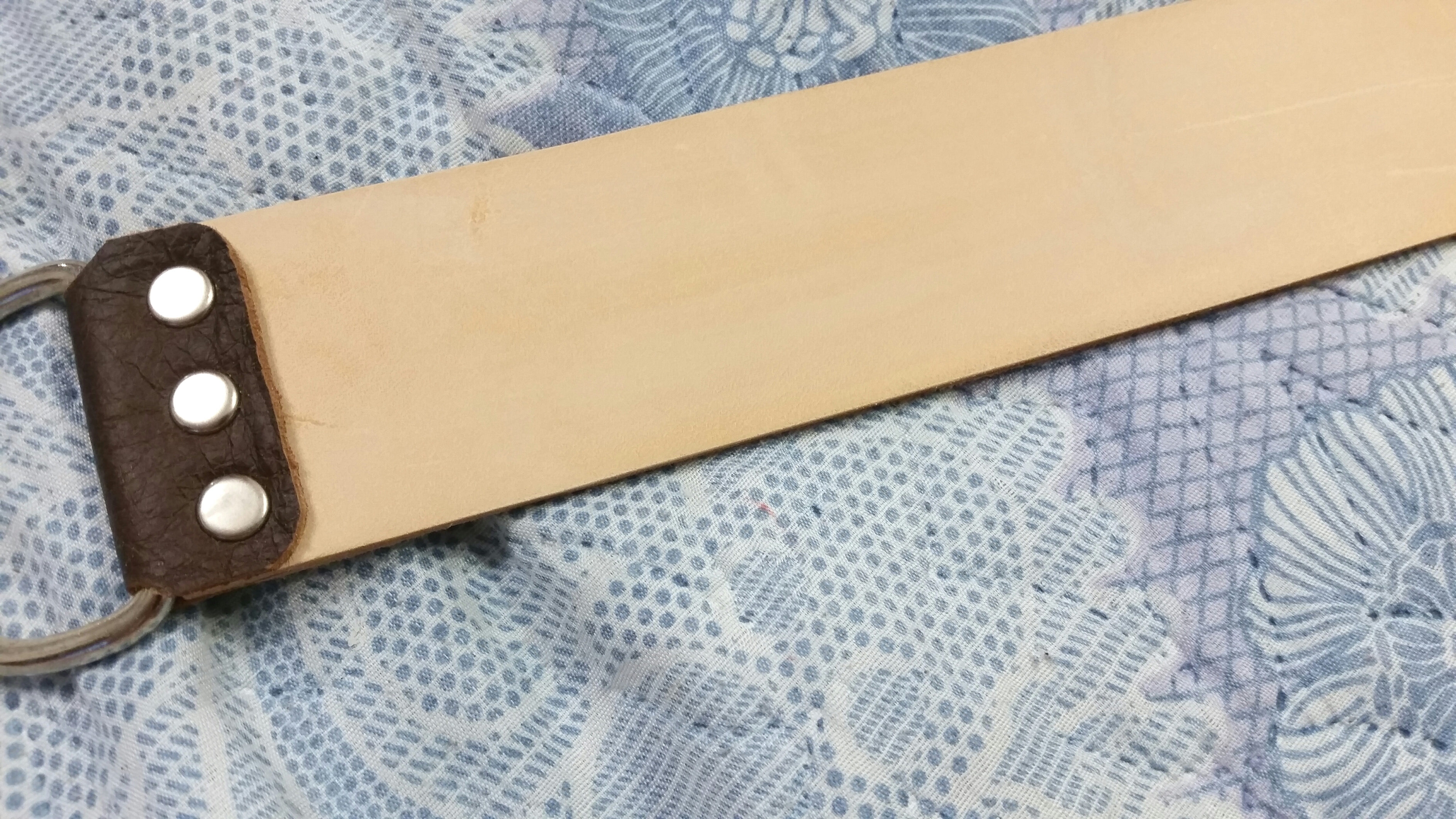 Качественная итальянская кожа КРС растительного дубления (чепрак). Ремень подготовлен к правке, поверхность прокатана, отшлифована до Р2500 и немного смазана костным маслом. Отлично правит, добротная нержавеющая фурнитура, удерживающие элементы из натуральной кожи, все ремни новые, изготавливаю сам.