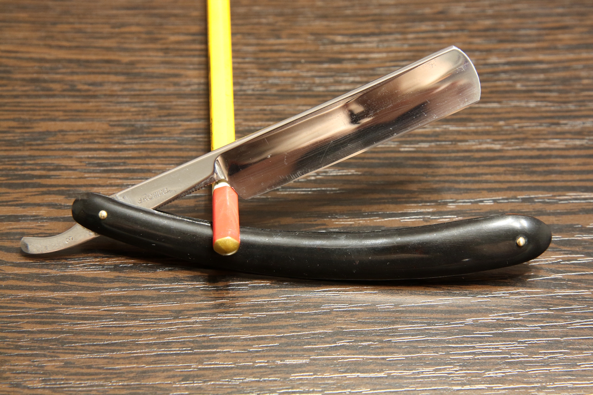 Опасная бритва Bonsa Solingen, сделана в Германии в г. Золинген, ширина полотна 18 мм, все родное. Ко мне попала с заводской заточкой и в отличном виде, с позолоченным гербом Золингена на полотне. Прошелся немного пастами вручную, продезинфицировал и подготовил к бритью. Удобная и красивая бритва с поющей немецкой сталью на полной выборке. Цена - руб. К бритве рекомендую приобрести ремень для правки опасных бритв моего изготовления из итальянской кожи (подробнее на странице 4, объявления 56-58 и странице 9, объявления 127). Spoiler Show