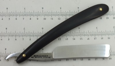 13/16 , почти клин. Углеродистая сталь, рог, кость. Всё родное. Бритва после реставрации. Следы времени остались. Заточена и готова к бритью. Бреет великолепно. Мягко и комфортно, как все бритвы домартеновской эпохи. Продана на другом ресурсе Spoiler Show