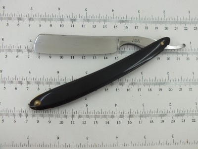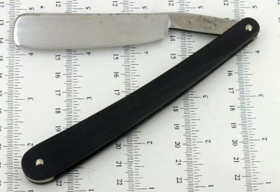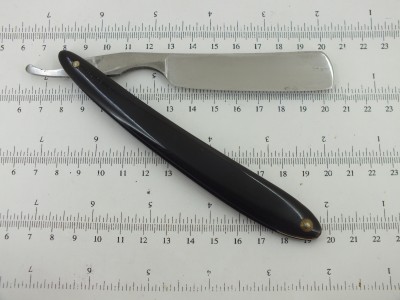7/8+ (22,7 мм.) , почти клин. Углеродистая сталь, рог, кость. Оправа заменена. Бритва после реставрации. Следы времени остались. Заточена и готова к бритью. Бреет великолепно. Мягко и комфортно, как все бритвы домартеновской эпохи. Продана на другом ресурсе. Spoiler Show