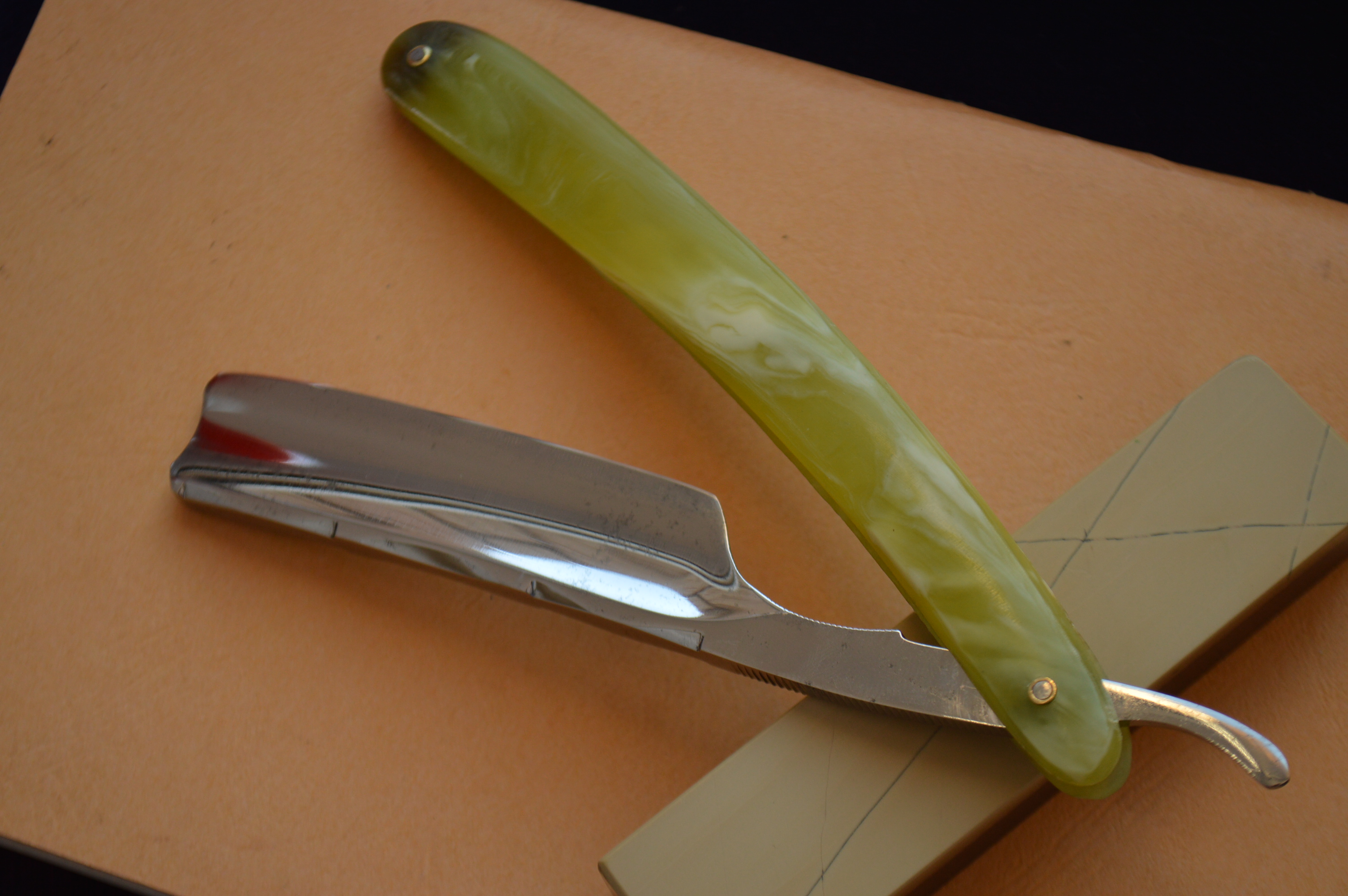 Сама сталь в лучших традициях французских бритв (хоть производитель и упоминал, что заказывает бритвы в Золингене, нельзя исключать того, что не всё время своего существования они заказывали бритвы только там, эта бритва бреет по-французски и ее исполнении с уклоном в половинную выборку для утяжеления бритвы прослеживается и на этом экземпляре): вязкая, мелко-зернистая, бритье превосходно мягкое и чистое. Замечательный экземпляр, который станет прекрасным украшением любой коллекции, будет отличным вариантом в повседневной работе.