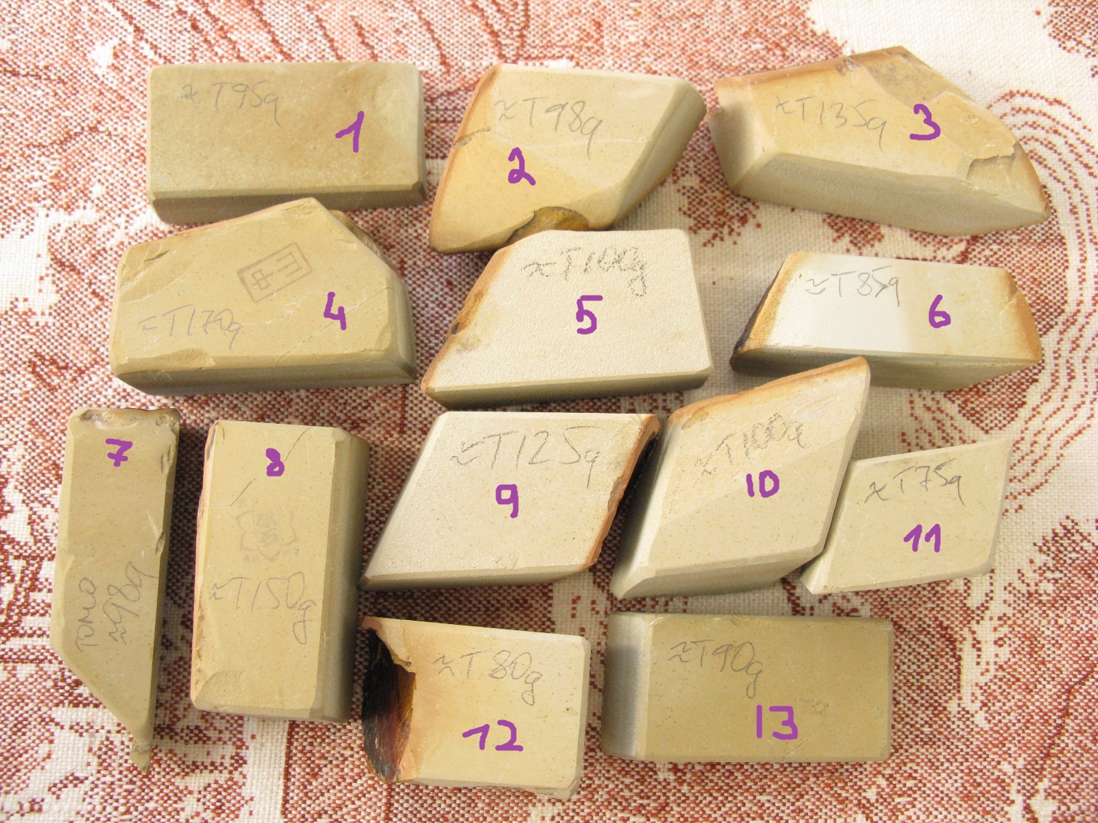 - Накаяма коппа, среднее качество, покупал ещё несколько лет назад за 200у.е., пусть так и стоит. Тест по запросу - тут где-то он уже светился. Камень не твердый, если что хорошо как большую нагуру, для этого и пкупал. Времеенно фиксирую курс на 75руб (это ниже официального). - Накаямаа, стандарт 135*82мм, красивая корка, проблески карасу, штампики плохо, но ещё видны, твердость 4,5. Качество высокое. 230у.е. Времеенно фиксирую курс на 75руб (это ниже официального). - Оозуку, стандартный сан-мастер размер, твердость 4,5. Обычный камень начального уровня. 90у.е. в комплекте томо-нагура 70г. Притирчик с оксидом хрома или железа по запросу. Времеенно фиксирую курс на 75руб (это ниже официального). Есть ещё, но цены приличные, так что не предлагаю, но кому интересно - пишите - много чего есть в личной коллекции, просто лень возиться с оформлением постов.