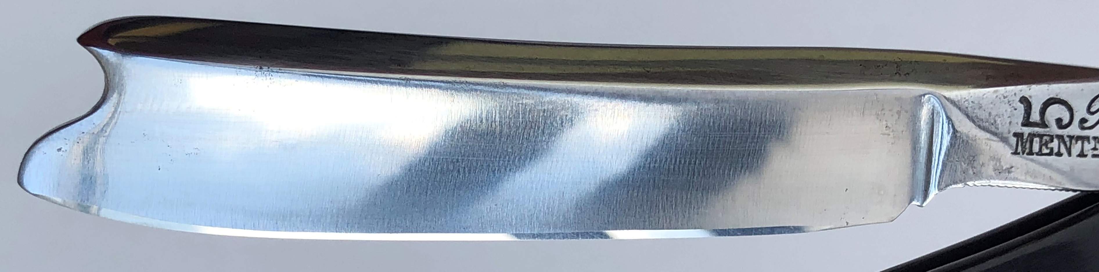 Бритва в очень хорошем состоянии. Реставрация клинка от Frans, новая роговая оправа тоже от него. Мои доработки также присутствуют. Хорошо сохраненная геометрия полотна.Кромочка равномерна по всей длине.Несколько мм у пятки не проточено, чтобы не испортить клинок камнями.Эффектный граненый обушок. В общем и целом красивая французская классика, в отличном и боевом состоянии. Заточена и лично протестирована. Все на очень приличном уровне.
