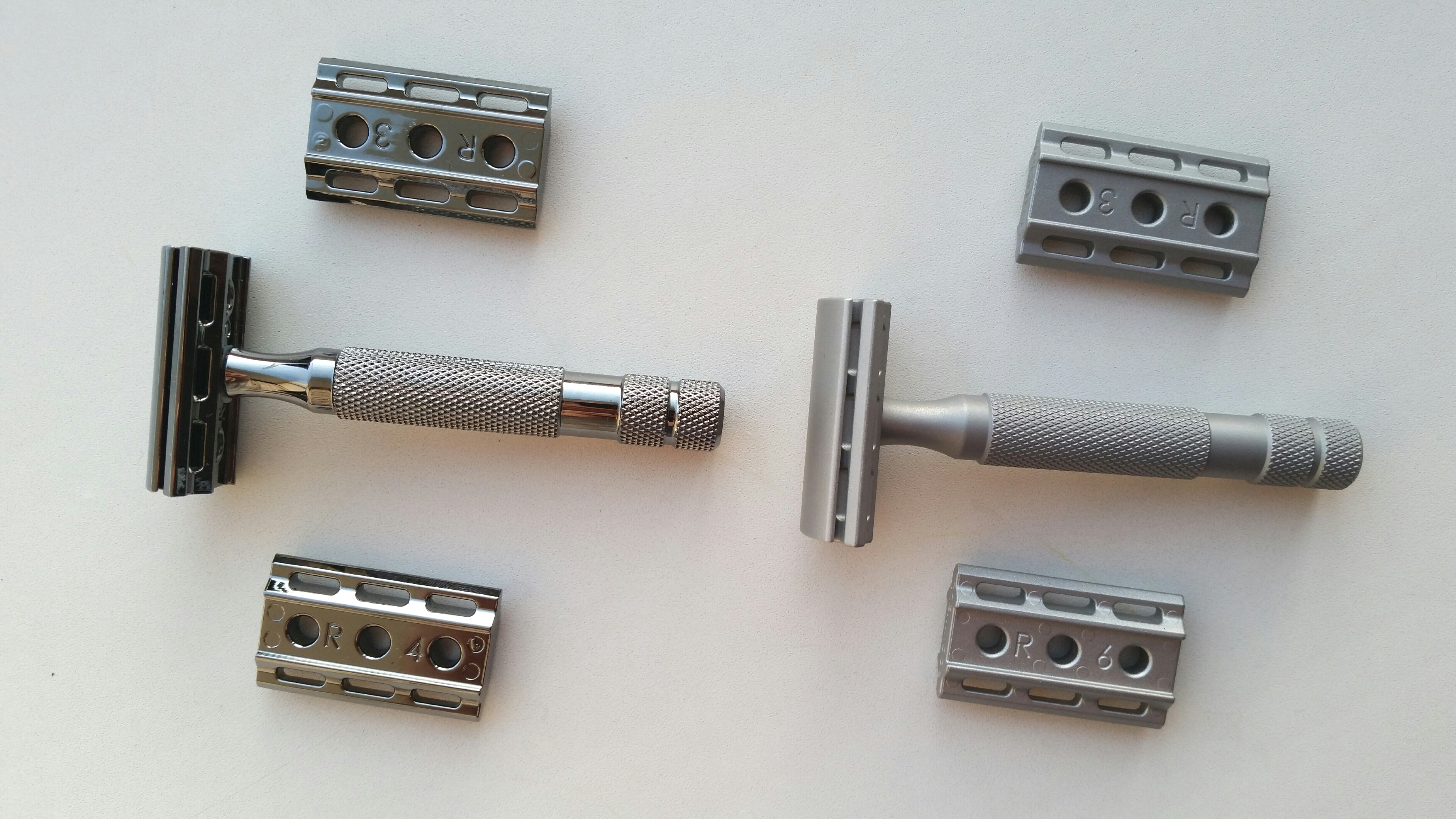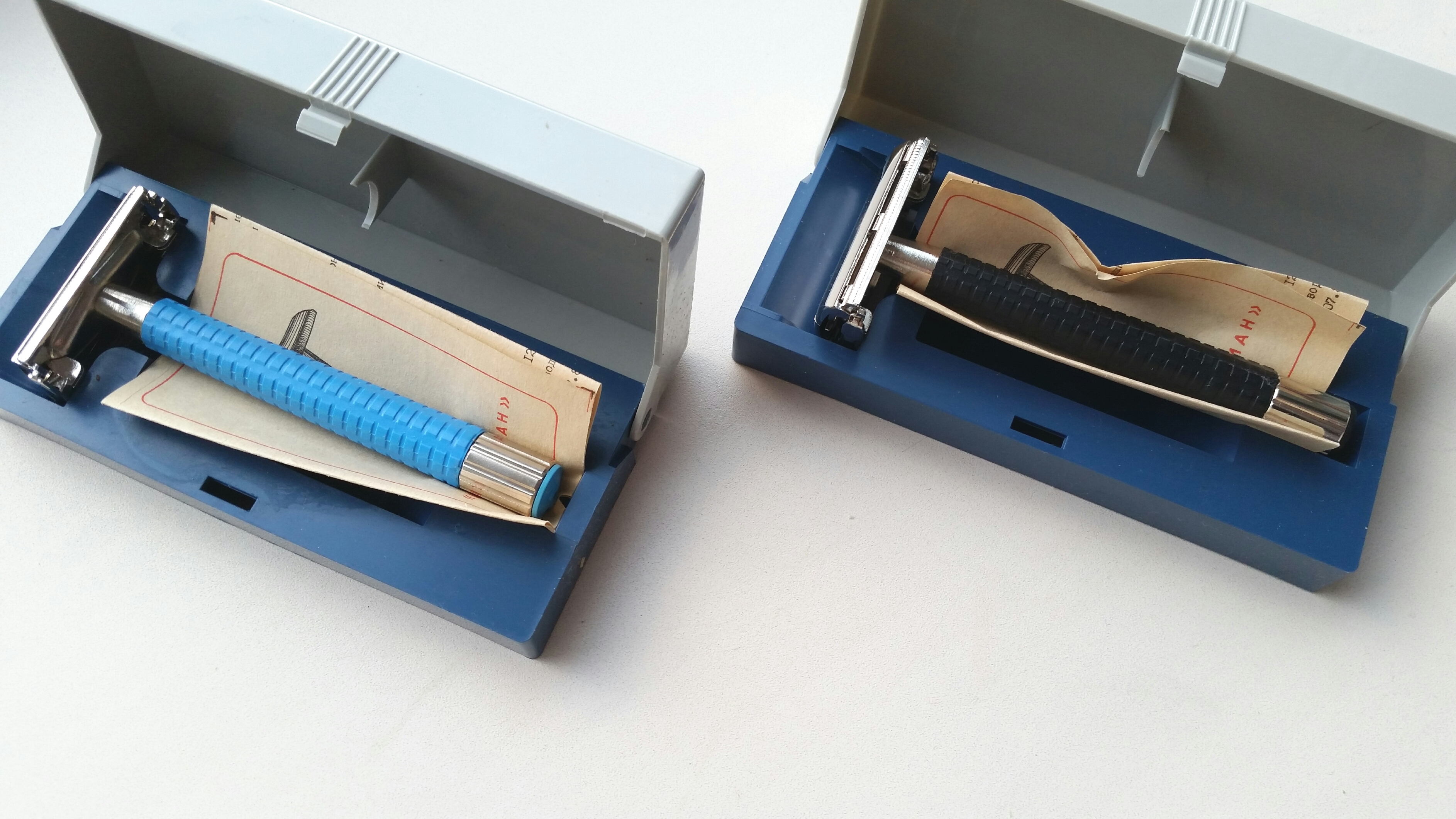 Регулируемые безопасные бритвы СССР, слева-направо:
