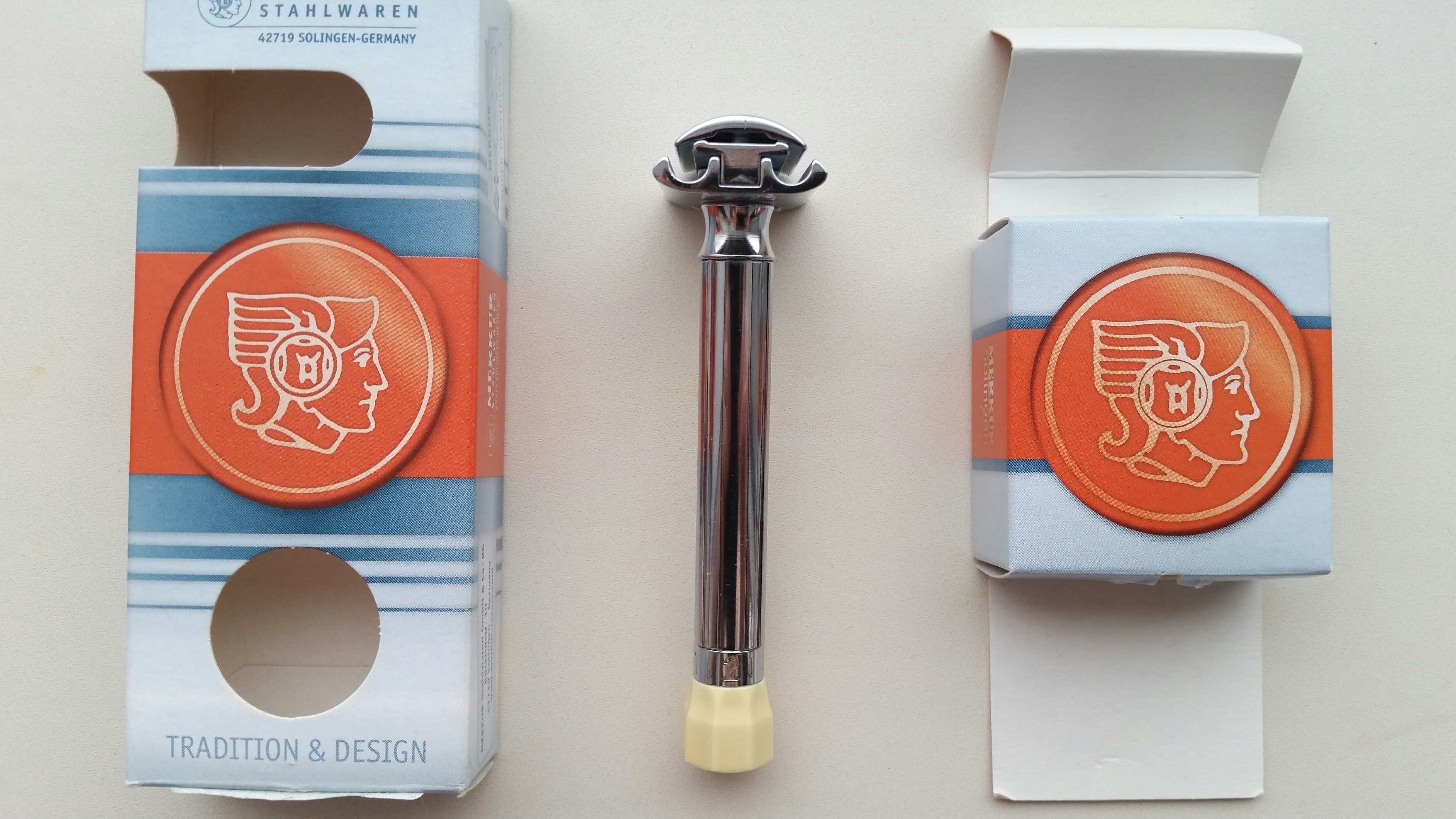 Безопасная бритва регулируемая Merkur Progress Long, удлиненная версия (последняя ревизия), более удобная, чем стандартная. Сделан в Германии (Золинген), классика с 1955 года. Станок регулируемый, от 1 до 5+ позиции (с любыми промежуточными значениями). Регулируя, вы можете сильно изменить характер бритья от "опасного" до "мягкого". Станок в отличном состоянии, внутри все в порядке (смазывал). Б/у 3 раза (покупался новым в магазине), не падал, не бился, покрытие без потерь, коробка в наличии. Цена - руб. Spoiler Show