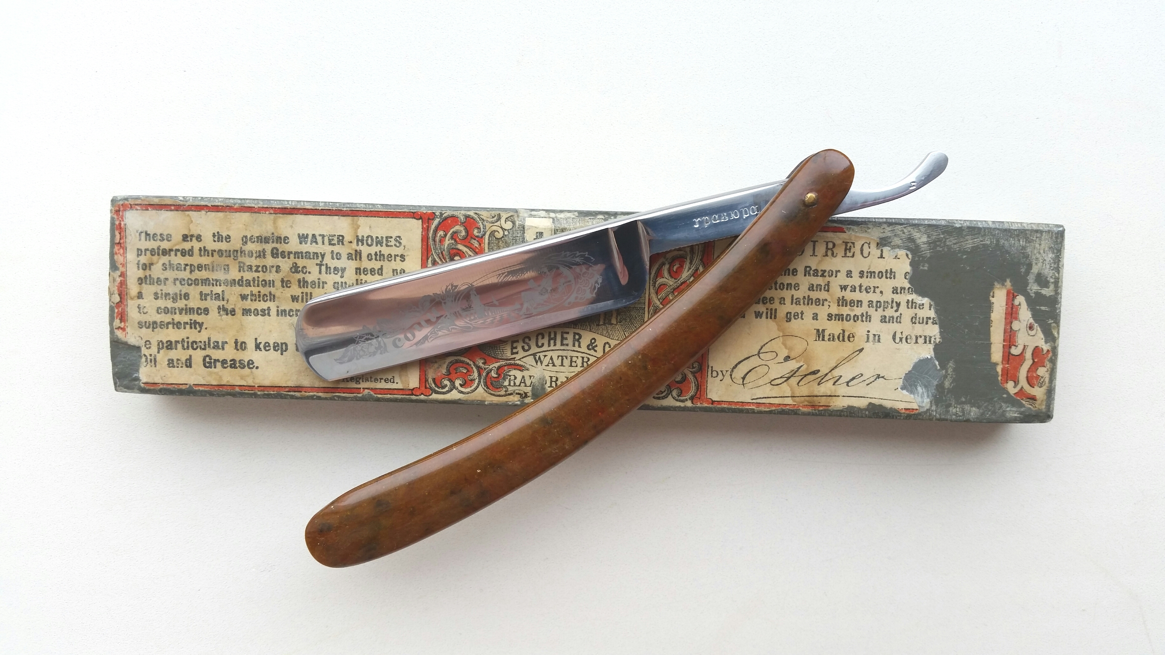 Атрибутированный Escher, крупный размер 8 дюймов, идет с этикеткой на обратной стороне и этикеткой на торце (покрыты акриловым составом, легко снимается), обозначающий слой Light-green (светло-зеленый). Я его когда то выравнивал и доводил, пользовался для финиша бритв (поверхность выгладилась, можно взбодрить). Камень имеет размеры 200х43х18 мм. Классический европейский бритвенный финиш, очень тонкий в работе камень. Опасная бритва в лот не входит. Цена - руб. Spoiler Show