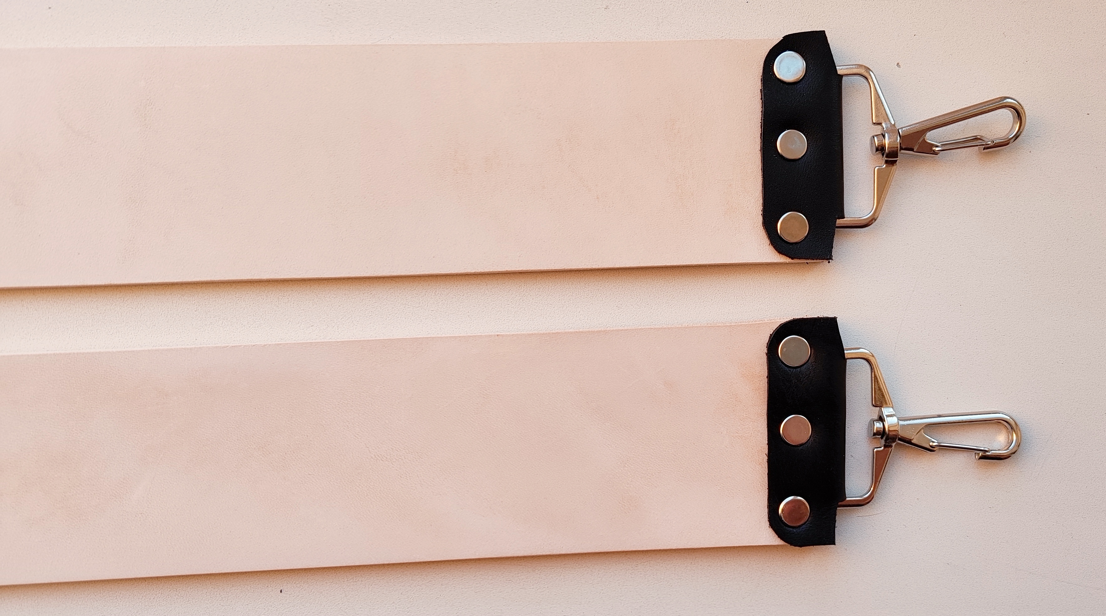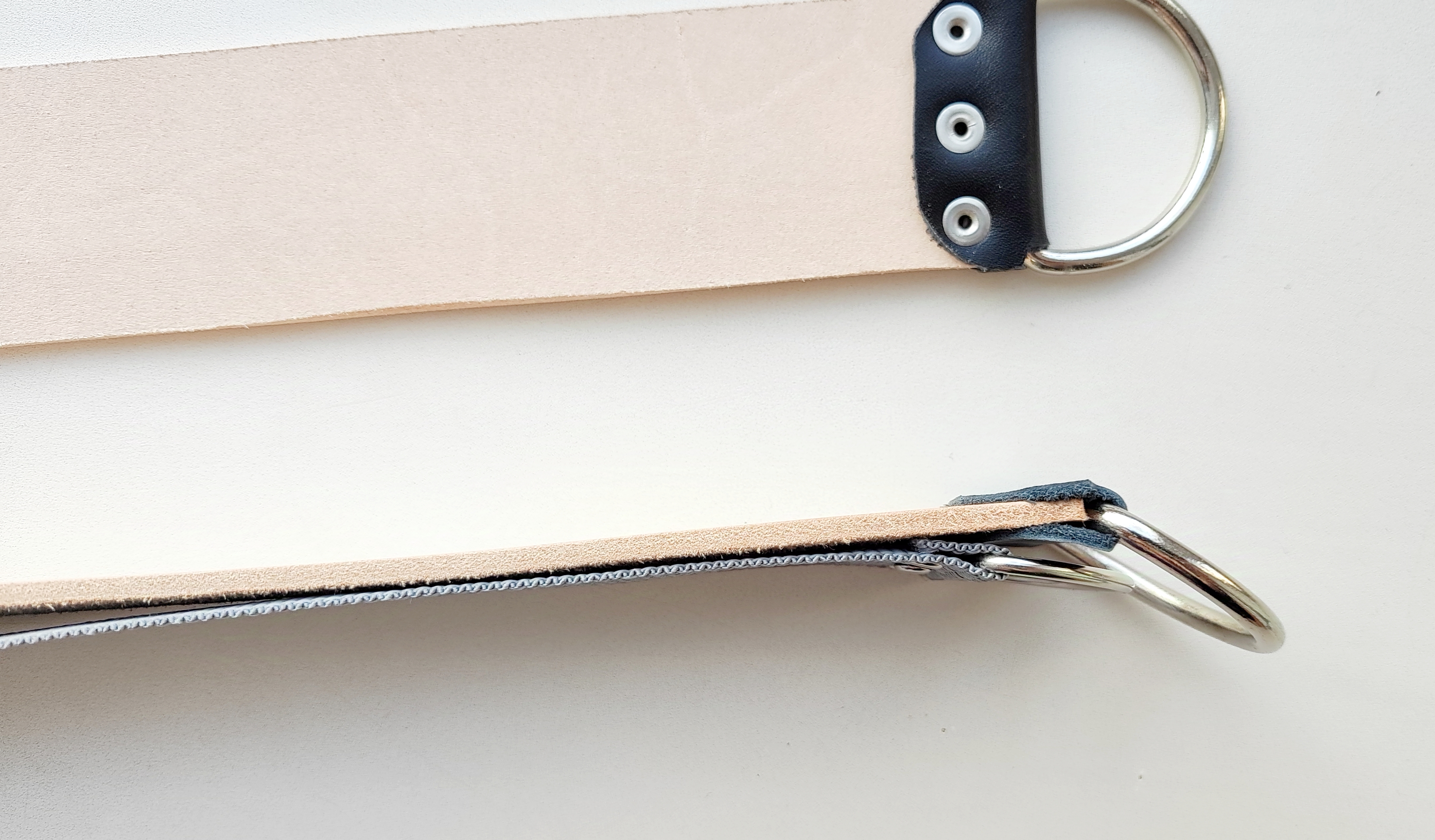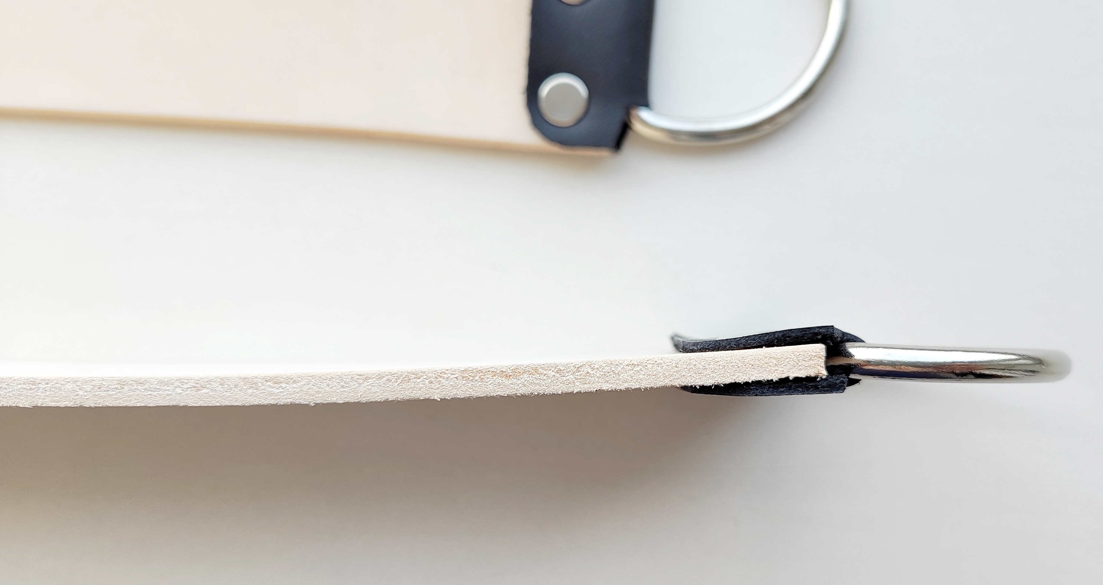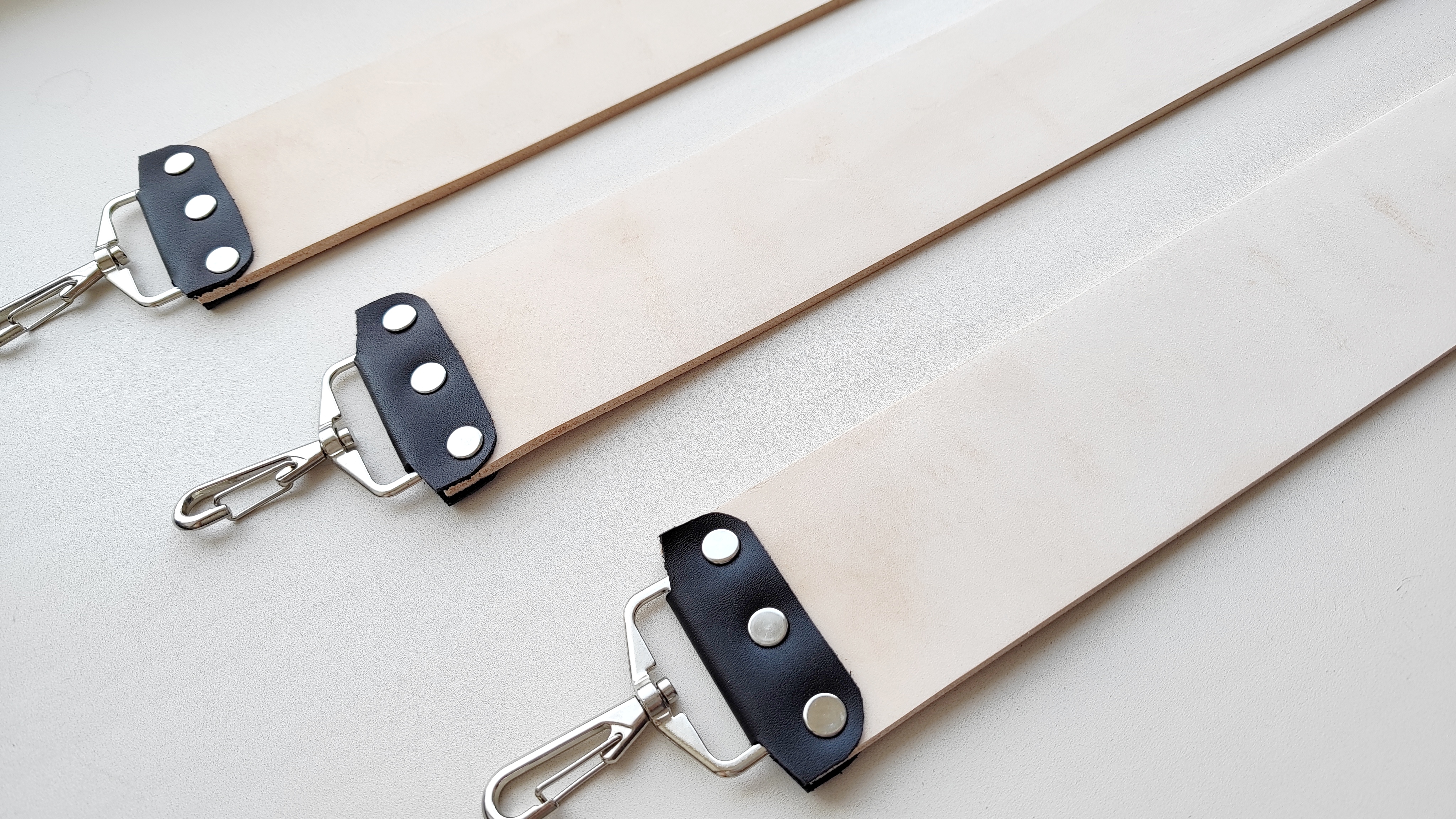 Ремень для правки опасных бритв, стандартный, 51 мм, с синтетической стропой, итальянская кожа КРС растительного дубления (чепрак). На ощупь ладонью ощущается очень мелкий и бархатный микроворс - под быструю и эффективную правку бритв любой твёрдости, как раз он и правит кромку. Ремень подготовлен к правке, поверхность прокатана и отшлифована до Р2500. На поверхности кожи могут быть более тёмные места, на работу не влияет. Это "растишка", она не подвергалась хим. дублению и окрашиванию, поэтому могут быть участки, отличающиеся по цвету, на правку это не повлияет. Нержавеющая фурнитура, удерживающие элементы из натуральной кожи, все ремни новые, изготавливаю сам. К ремню прикреплена дополнительная синтетическая стропа, служит для предварительной правки, удаления чешуек/махры/микровлаги после бритья с кромки, а так же может использоваться для нанесения пасты или абразивного спрея (следите, чтобы паста или спрей не попали на основной кожаный ремень). Длина ремня - от 500 мм Ширина - 51 мм Толщина кожи - 3.8-4 мм Толщина синтетики - 1 мм. Инструкцию по использованию и хранению ремня вышлю, опасная бритва с фото не продаётся. Цена 3210 руб. Spoiler Show