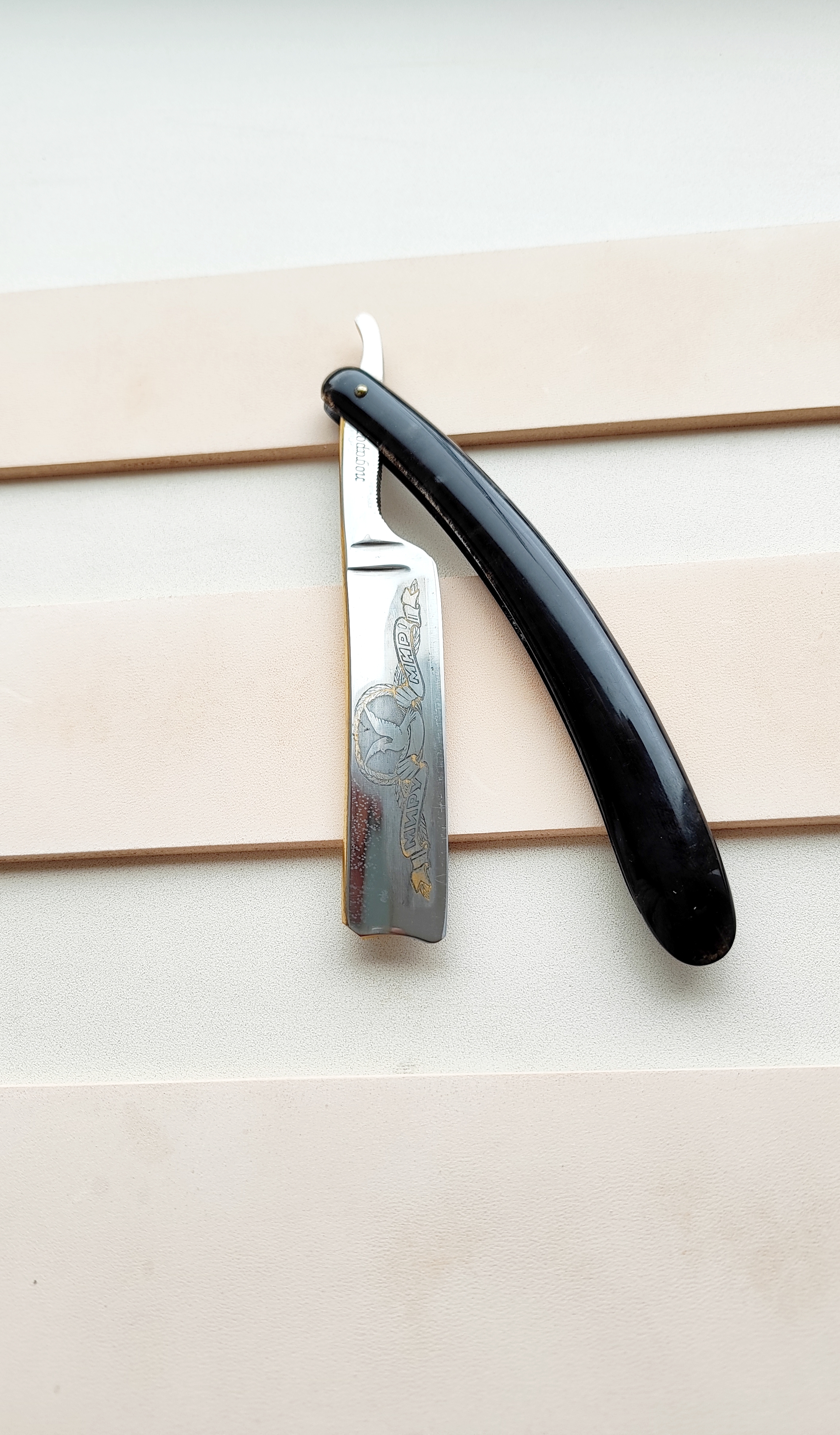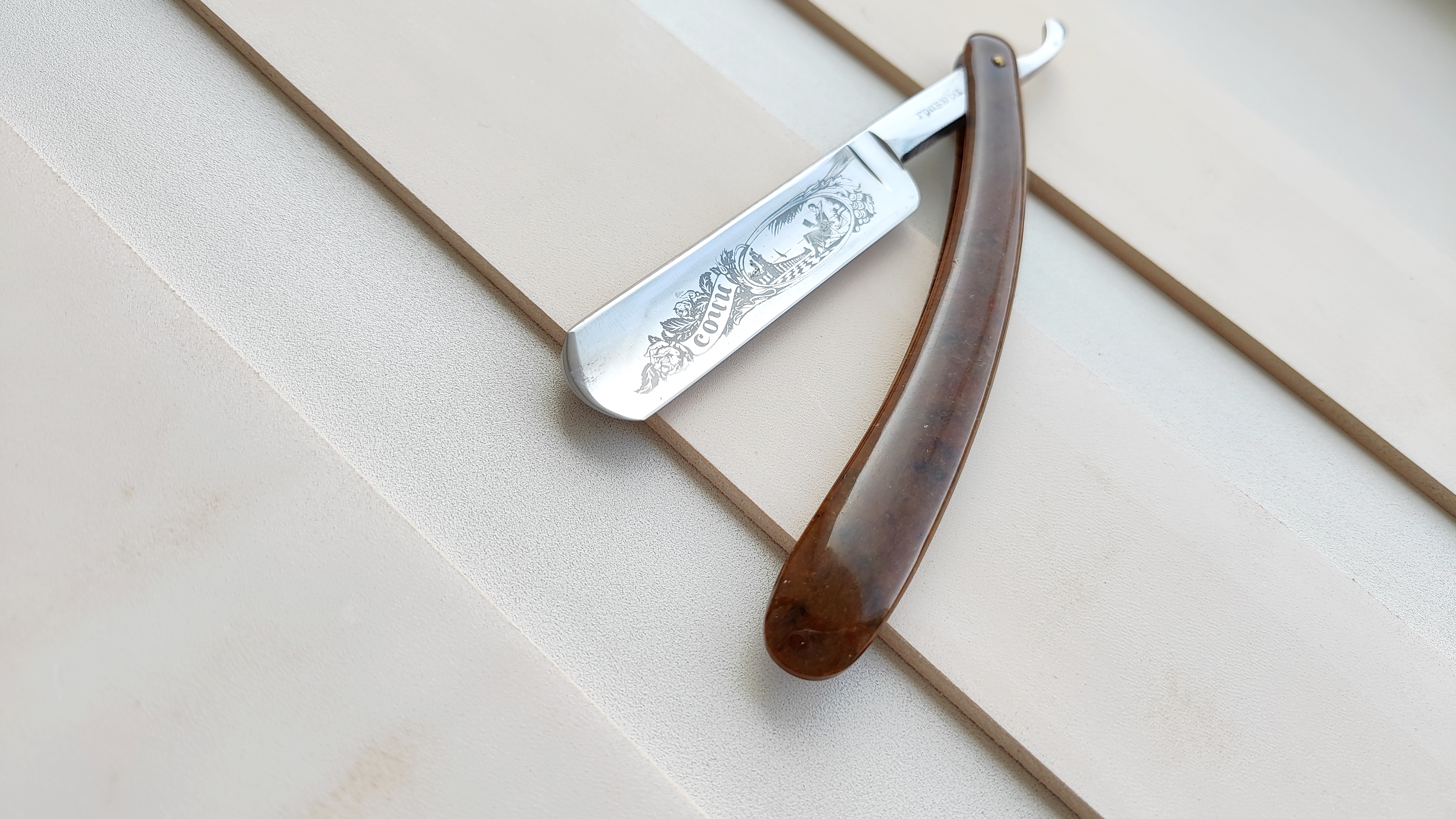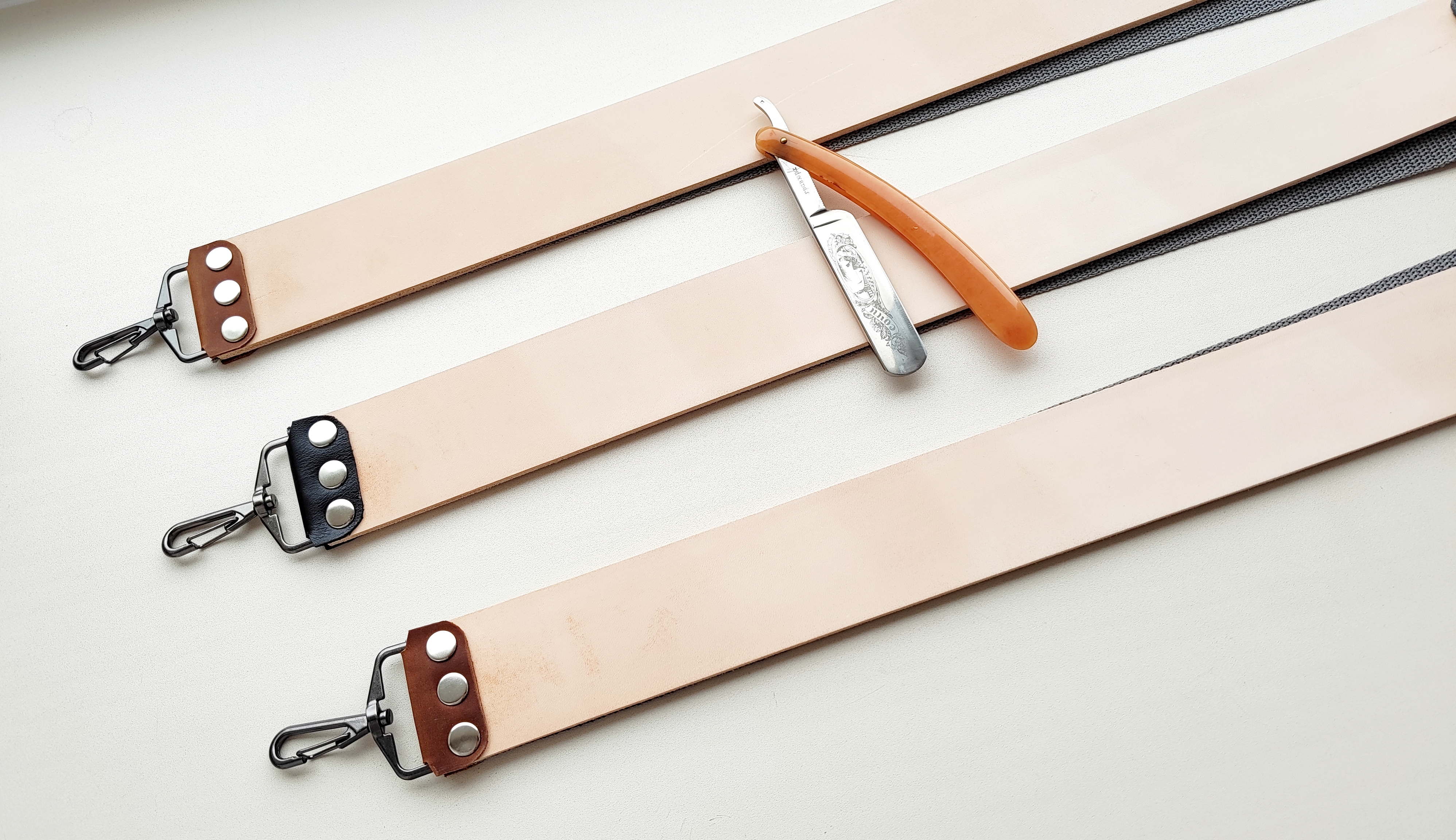 Ремень для правки опасных бритв, 57 мм, итальянская кожа КРС растительного дубления (чепрак). На ощупь ладонью ощущается очень мелкий и бархатный микроворс - под быструю и эффективную правку бритв любой твёрдости, как раз он и правит кромку. Ремень подготовлен к правке, поверхность прокатана и отшлифована до Р2500. На поверхности кожи могут быть более тёмные места, на работу не влияет. Это "растишка", она не подвергалась хим. дублению и окрашиванию, поэтому могут быть участки, отличающиеся по цвету, на правку это не повлияет. Нержавеющая фурнитура, удерживающие элементы из натуральной кожи, все ремни новые, изготавливаю сам. Промежуточный вариант между шириной 51 и 63 мм - золотая середина. Длина ремня - от 500 мм Ширина - 57 мм Толщина кожи - 3.8-4 мм. Инструкцию по использованию и хранению ремня вышлю, опасная бритва с фото не продаётся. Цена 3030 руб. Spoiler Show