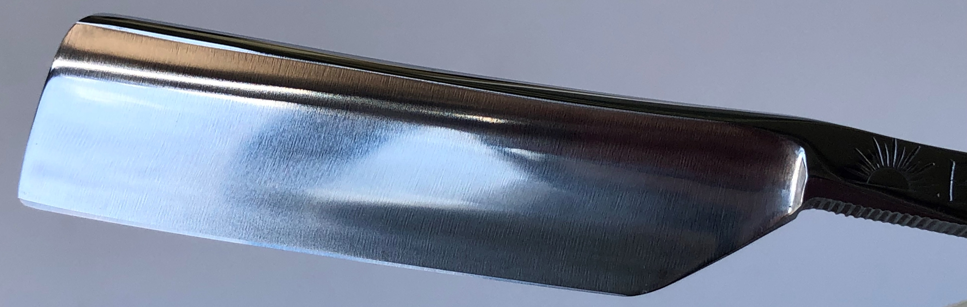 Бритва не разбиралась и не ремонтировалась. Оттер от остатков смазки с хранения. Есть несколько "следов времени", но трогать ничего не стал, чтобы сохранить полную оригинальность.Имеются следы от электро-химической заводской заточки.Идеальная геометрия полотна:кромочка равномерна по всей длине.Заводская заточка была переточена и доведена до комфортного бритья.