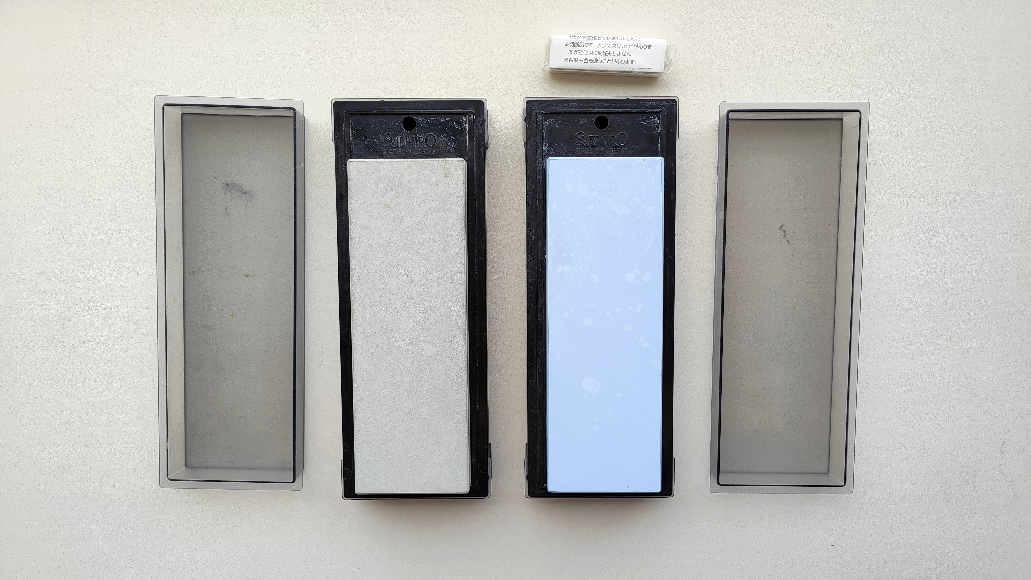 1. Японский водный камень для заточки Suehiro New Cerax 1000/3000, комбинированный, 1000/3000 JIS. Размеры самого абразива 183х63х13.5 -14 мм (толщина каждой стороны). В комплекте коробка-ванночка и камень для чистки (дрессинг стоун). Камень мало б/у, заточено несколько ножей, выработки практически нет, на поверхности есть несколько мелких царапин. Цена 3800 руб. 2. Японский водный камень для заточки Suehiro New Cerax 320/800, комбинированный, 320/800 JIS. Размеры самого абразива 183х63х13.5 -14 мм мм (толщина каждой стороны). В комплекте коробка-ванночка. Камень мало б/у, заточено несколько ножей, выработки практически нет, на поверхности есть несколько мелких царапин. Цена 3200 руб. Камни Suehiro New Cerax разработаны и произведены в Японии, подходят для заточки различных ножей, столярного инструмента, опасных бритв. Данные камни нужно замочить перед использованием минут на 20-25, в процессе работы смачивать поверхности и очищать шлам. Камни универсальные, как под углеродку, там и под нержавейку, работаю быстро и предсказуемо, в условиях просушки не капризны. Spoiler Show Кто сейчас на конференцииСейчас этот форум просматривают: нет зарегистрированных пользователей и 20 гостей | |