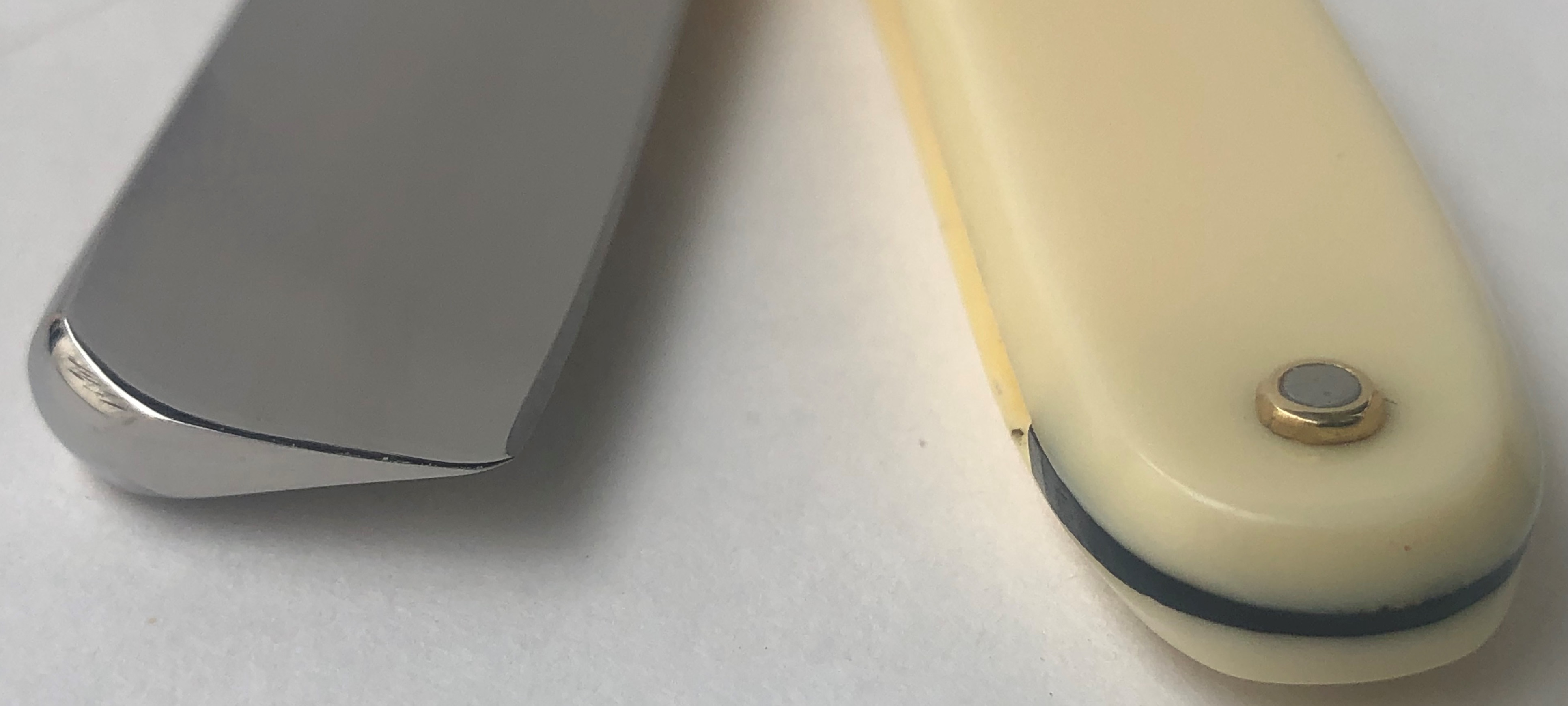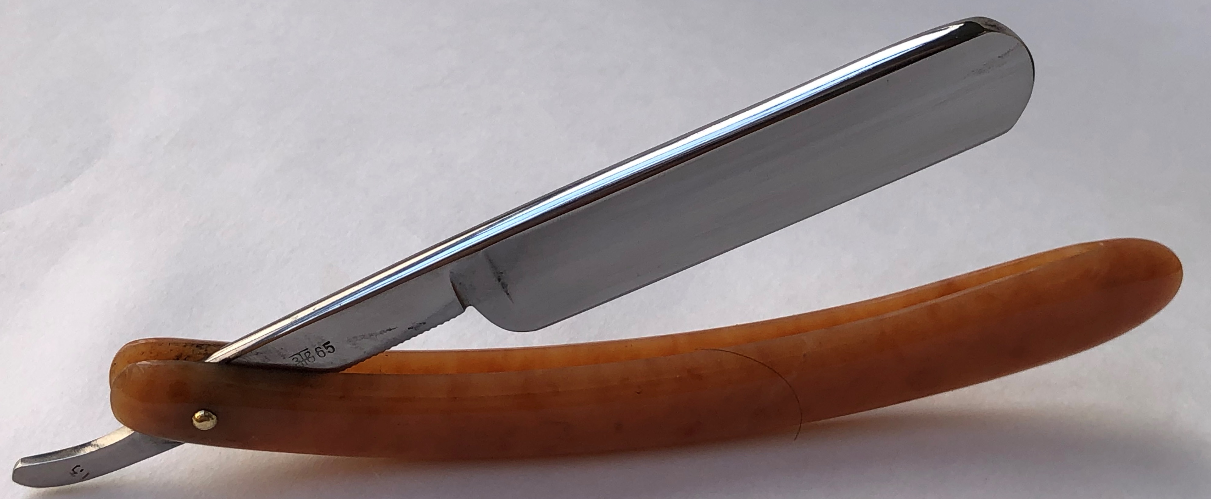 Ширина полотна-18.0 мм. Толщина обушка-5.0 мм. Полная вогнутость. Углеродистая сталь. Первая половина прошлого века. Привел в порядок старушку. Еще послужит долго.Перешлифовал и переполировал клинок. Замена пинов и внутренних шайб.Очень хорошее , рабочее состояние.Кромочка равномерна по всей длине. Красивая пластиковая ручка,"под черепаху".Удобная форма лезвия для новичка прежде всего, а также пойдет любому пользователю. Заточена и готова к бритью. Цена-9500 р с доставкой.ПРОДАН Spoiler Show