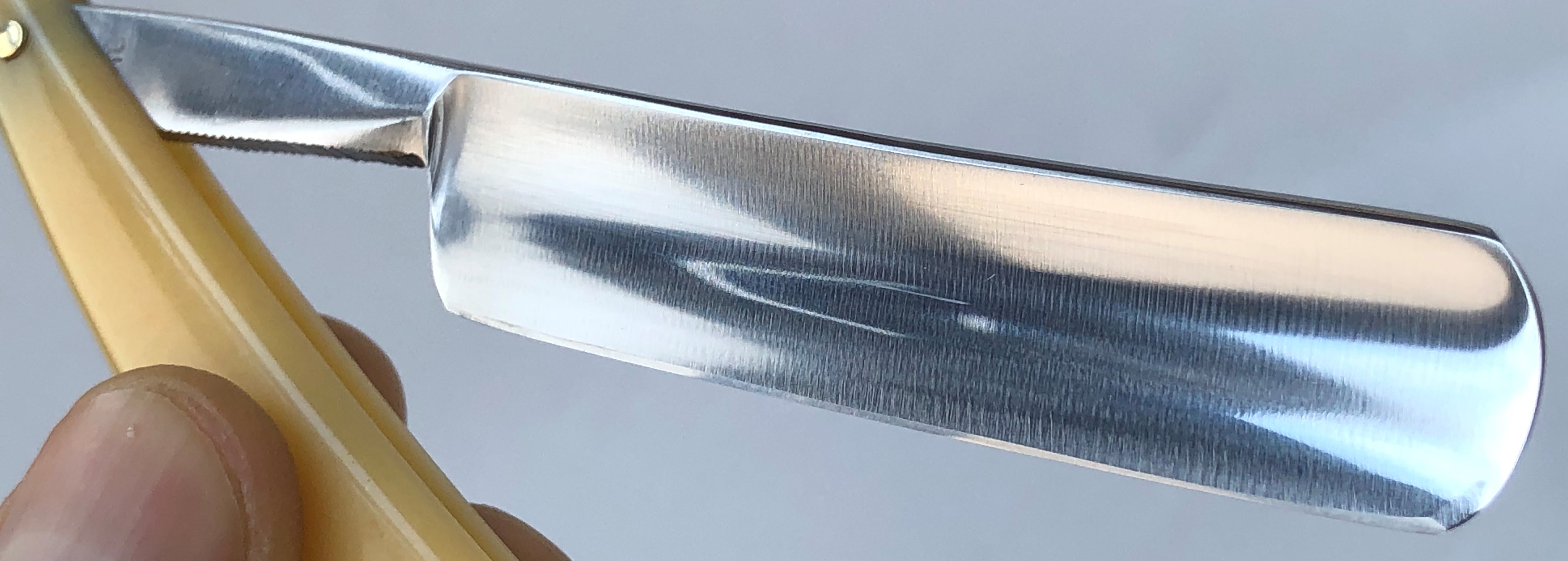 Картинка была сильно потерта и царапины были тоже, которые пришлось убрать.Наверное вообще была непользованная, только от времени запущена, что не отменяет возможность привести ее в хорошее состояние. Регринда никакого не делал, но чтобы убрать все огрехи ,полотно было перешлифовано. Даже если и пришлось бы сделать регринд, тут есть достаточно "мяса" и возможности хорошо сработать.Когда делаю регринд, то описываю это сразу.Если бы бритвы была бы в более лучшем внешнем состоянии, то цена была бы совершенно другая. Да, бритва продана уже.. Всё будет ХОРОШО...тел:+79065827134