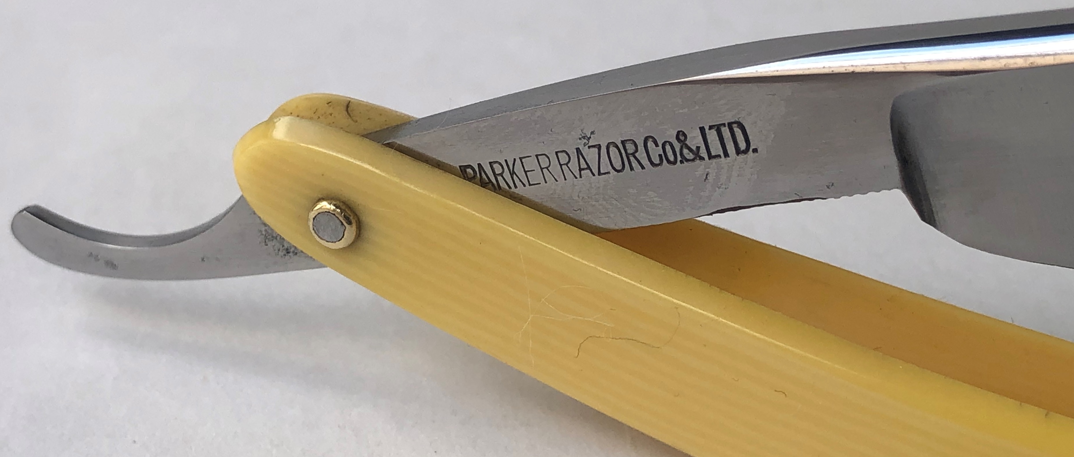 Бритва в прекрасном состоянии, с минимальными следами пользования.Была разобрана для добавления внутренних шайб, с сохранением родного осевого пина.Оригинальная шлифовка и полировка клинка.Идеальная геометрия полотна:кромочка равномерна по всей длине.