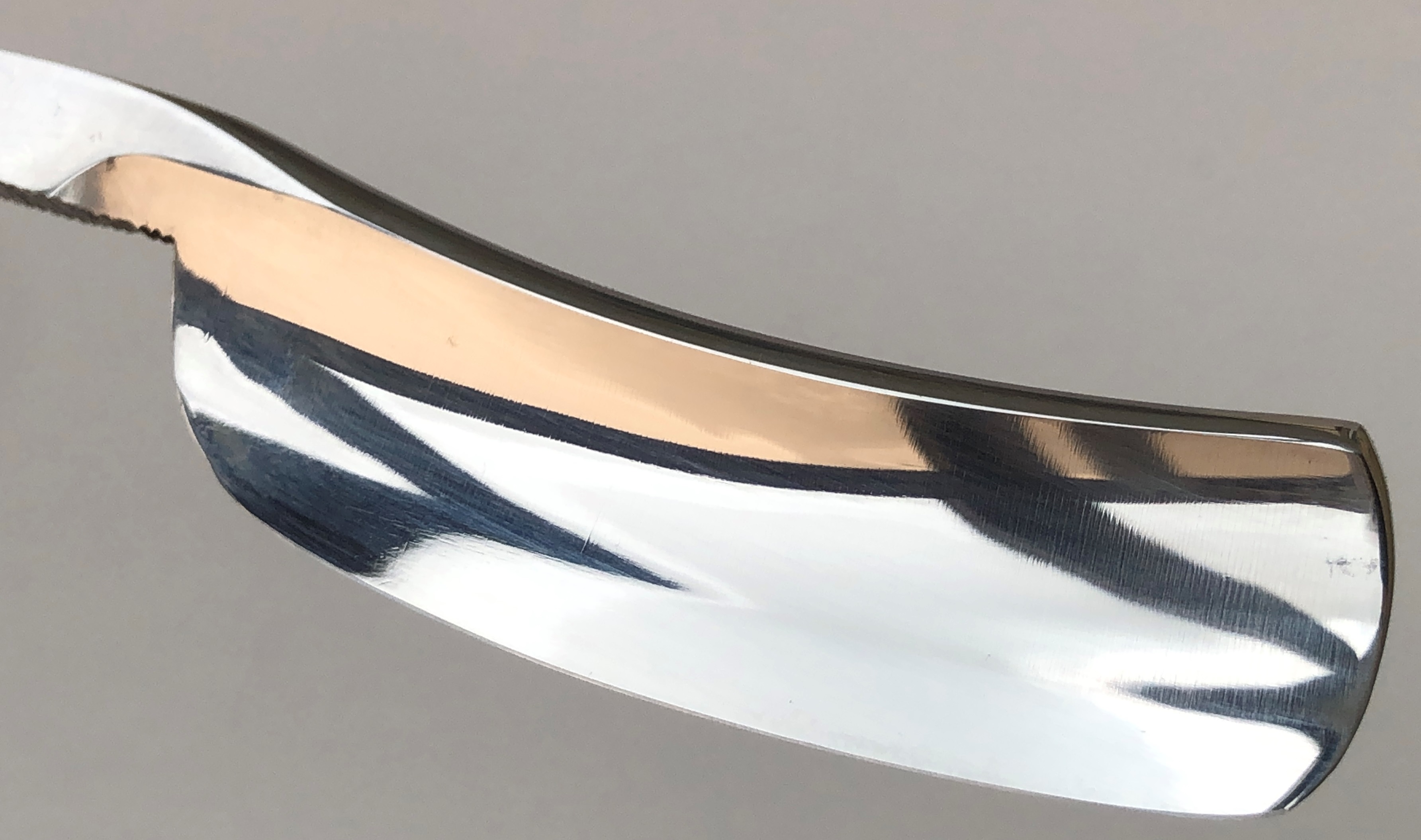 Кромочка идеально ровная по всей длине и почти незаметная.Тяжёлая,красивая бритва,которую просто не хочется выпускать из рук.Состояние бритвы, как вчера с завода.Бритва заточена и лично протестирована. Сталь умеренно твердая, что придает небольшую агрессию при бритье, что вполне характерно именно бритвам с подобными сталями.Но бритье чистое, приятное и без раздражения.Бритва получилась очень острой, со своим характером и ошибок не прощает.