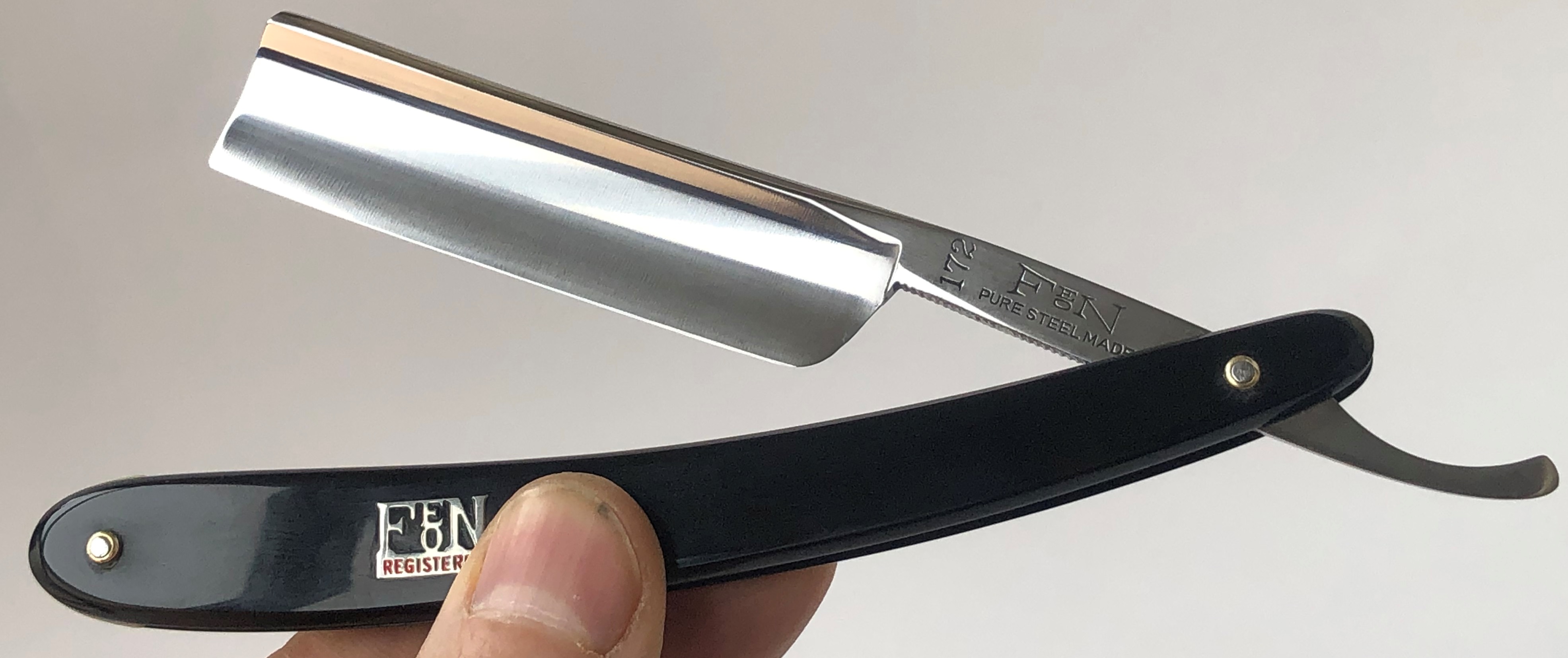 Бритва по своей форме клинка и размерам наиболее подходящая для новичка. Крупная и достаточно тяжёлая.Заточена и готова к бритью.