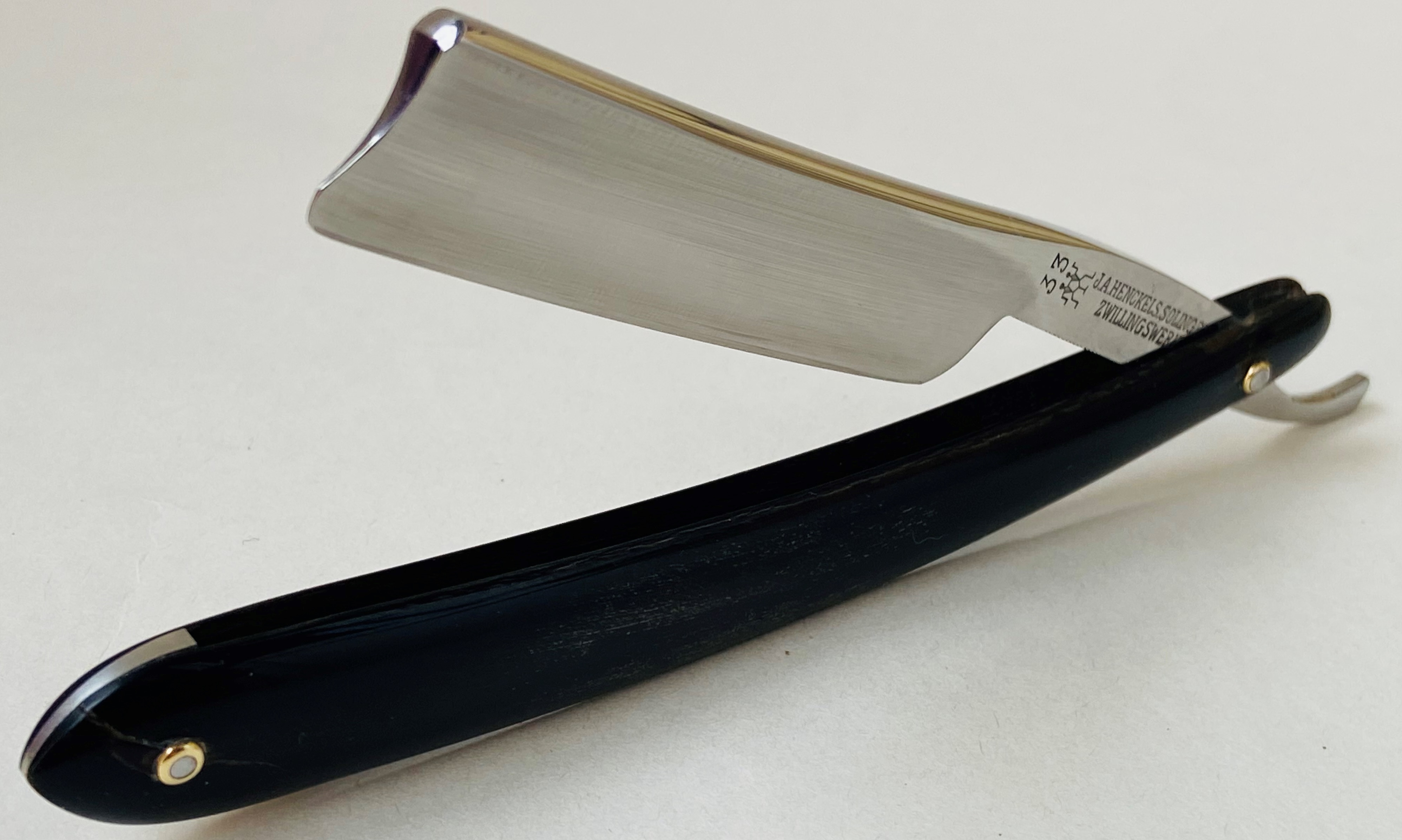 Бритва без активных следов пользовании и находится в прекрасном состоянии для своих преклонных лет.Для порядка перебрал бритву, заменив внутренние шайбы,но заново поставив оригинальные пины на место.Умеренная шлифовка и полировка полотна.Кромочка равномерна по всей длине.Тяжёлая и мощная бритва.Оправа ровная,в идеале.Заточена и готова к бритью.
