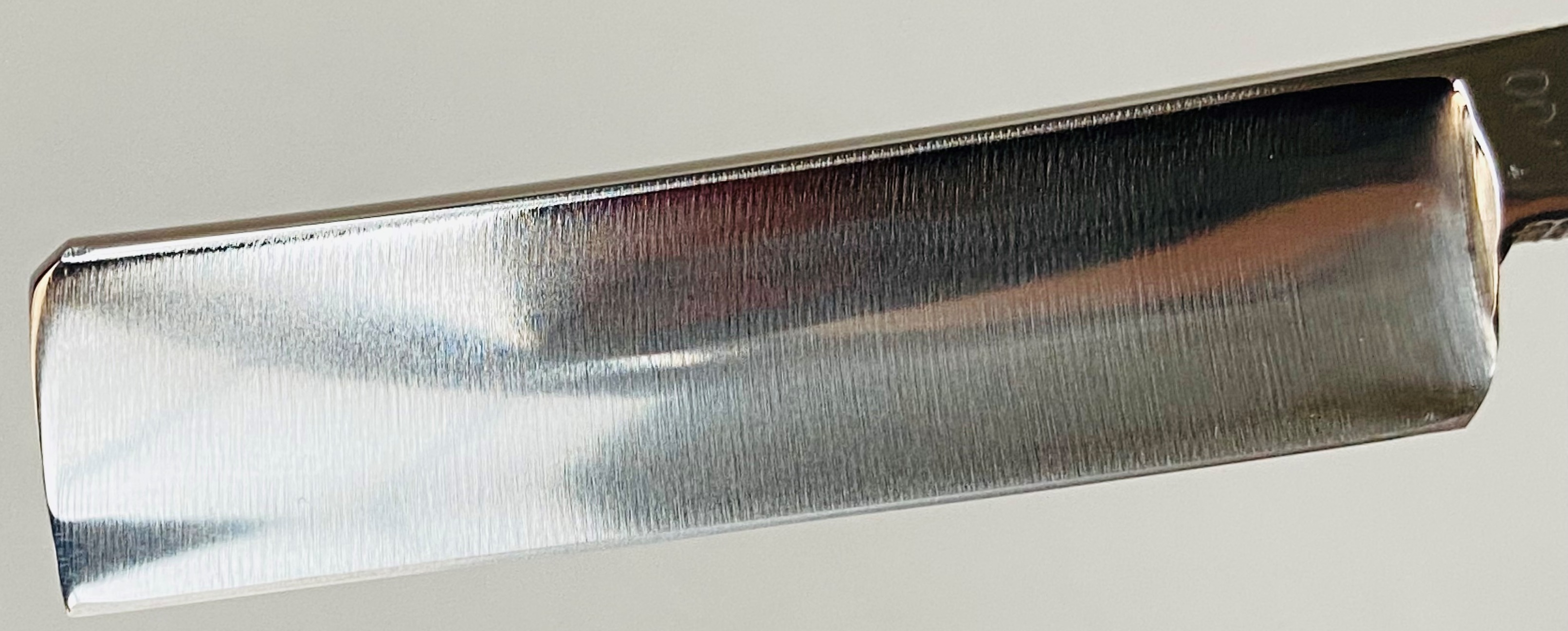 Сталь и кромка чистые от разного рода видимых дефектов. Идеальная геометрия полотна:кромочка равномерна по всей длине и еле заметна. Бритва тяжёлая, мощная и не прощает ошибок.Эффектная,фирменная оправа таже находится в прекрасном состоянии:плашки ровные и ничего не болтается. Клин по центру. Не пропустите редкую, красивую и высококачественную вещь в свою коллекцию.