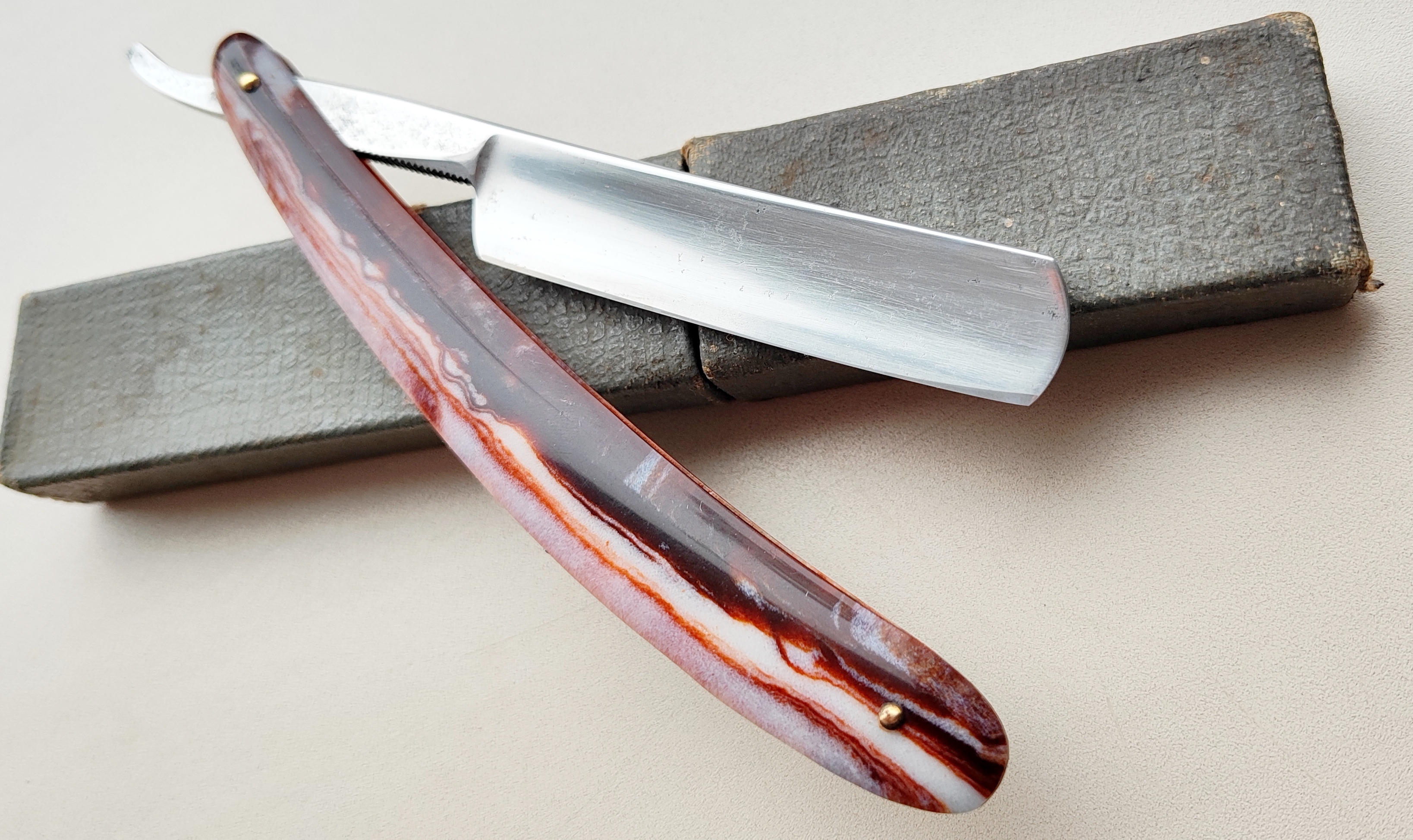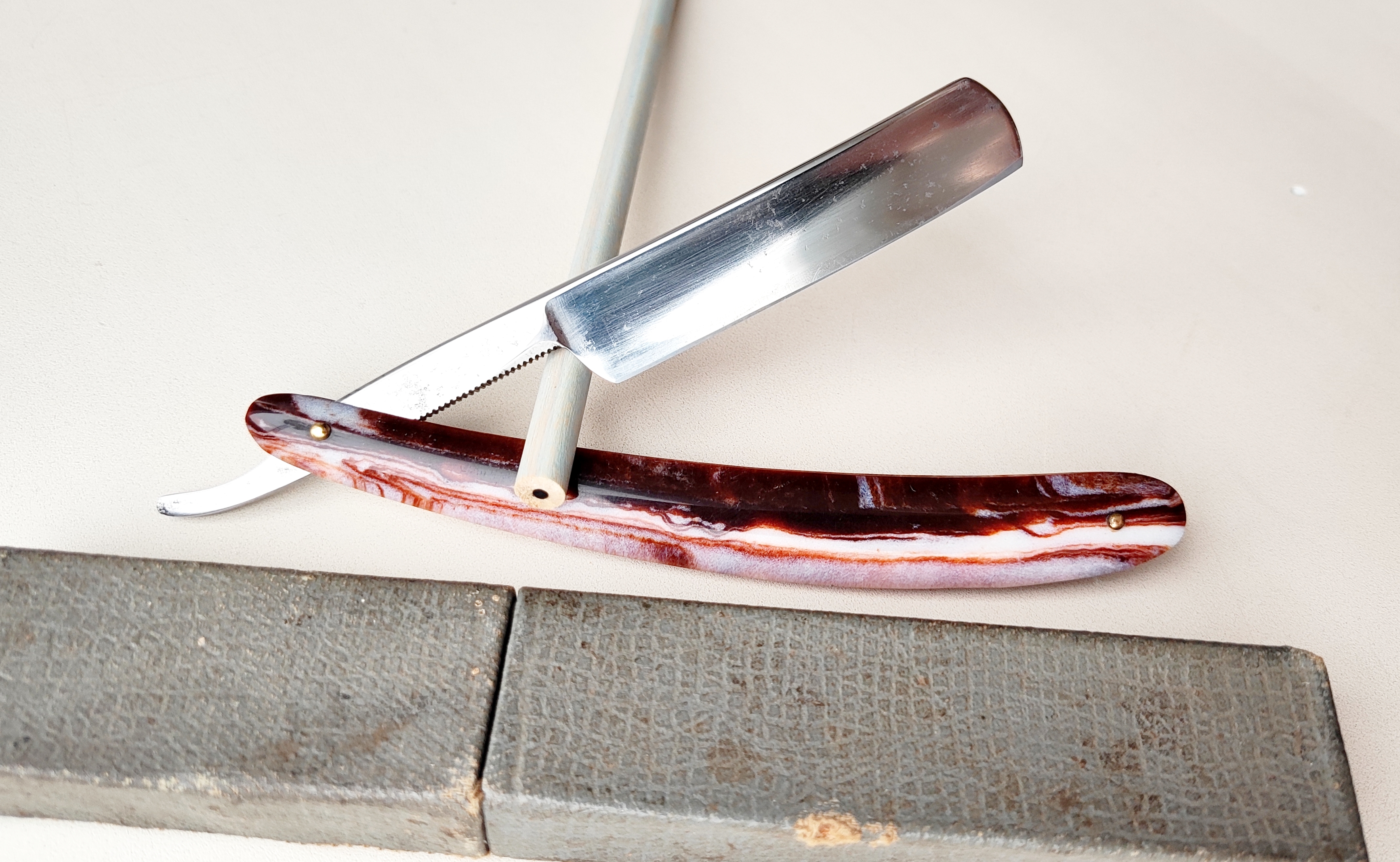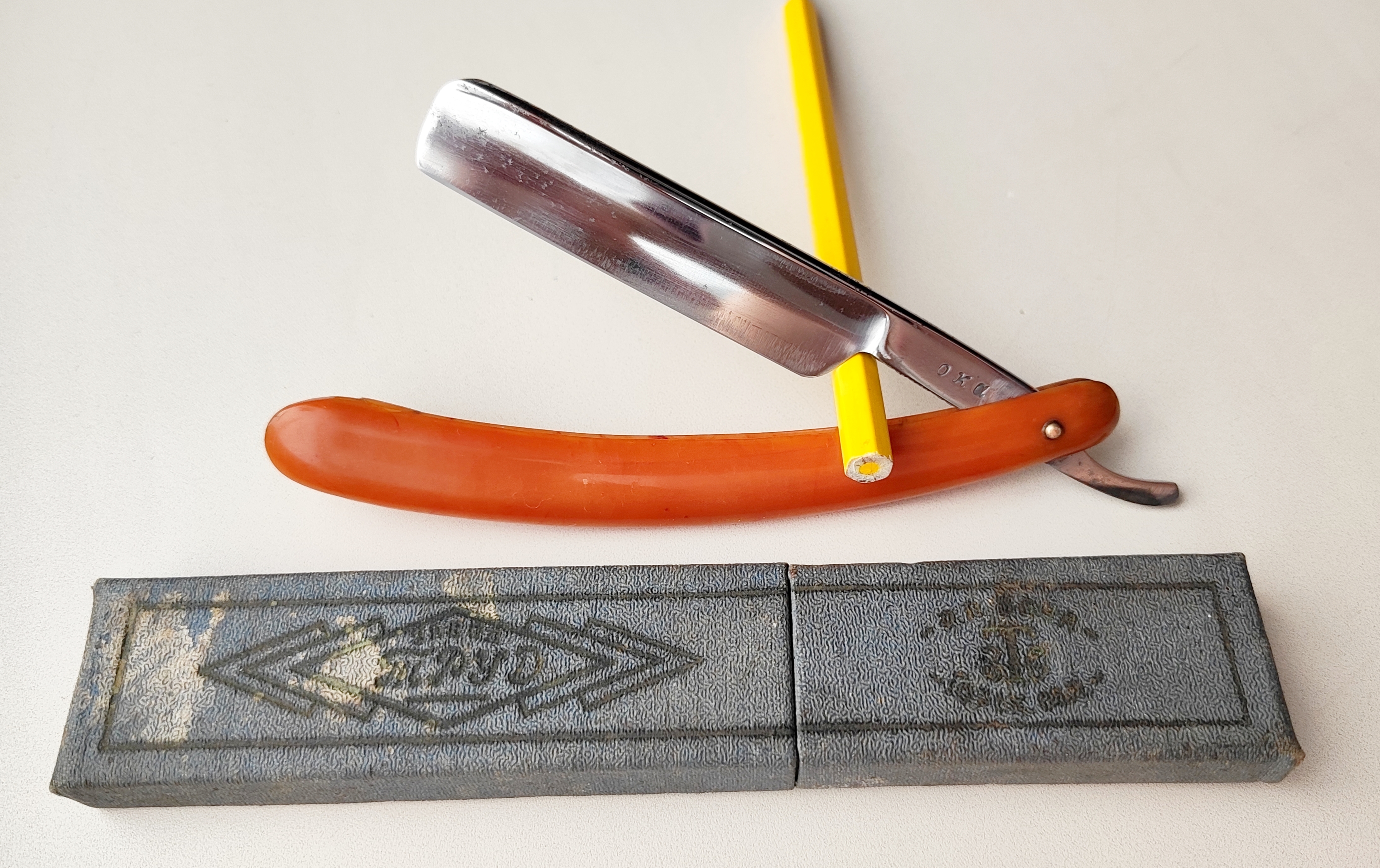Опасная бритва с фото не продается и к ремню не прилагается.
