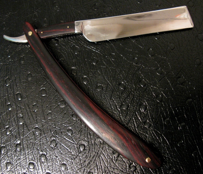 Re: Продаётся от m-s-rПродам старенькую бритву, когда то на полотне присутствовала надпись готикой "Diamond Edge Razor" (ушла вместе с ржавчиной), на эрле никаких клейм и надписей не было. Похоже американка начала прошлого века, торговая марка принадлежала - Shapleigh Hardware(1864-1900), Norvell-Shapleigh(1902-1915), теперь только вера на слово. Произведена замена ручки, чистка и реставрация клинка, наточена. Ручка и вставки на эрле - красное дерево (какая конкретно экзотика не знаю).