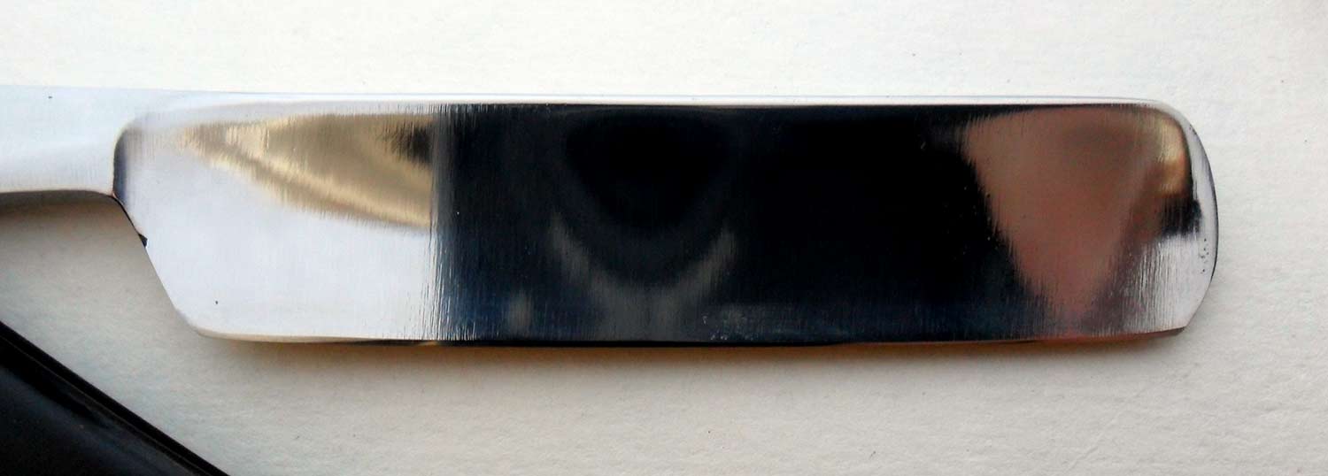 На бритве нет клейма производителя, причем уверен, что его там никогда и не было, а не просто стерто при восстановлении. Потому что следов существенного съема металла на эрле нет, при такой глубине штампа, как на бритве, снимать надо было много. Судя по материалу ручки, форме клинка и шрифту надписи предполагаю конец XIX века-начало XX века. Ручка - рог в отличном состоянии, клинышек - металл. Ручка, клинышек и пины, по-видимому, родные. Бритва приехала малоточенной, явно использовалась немного. Геометрия quarter hollow, бреет отлично, по ощущениям довольно близка к клину, хотя попроще в процессе. Естесственно, заточена и полностью готова к бритью. Ширина бритвы 18 мм, толщина обуха 6 мм.